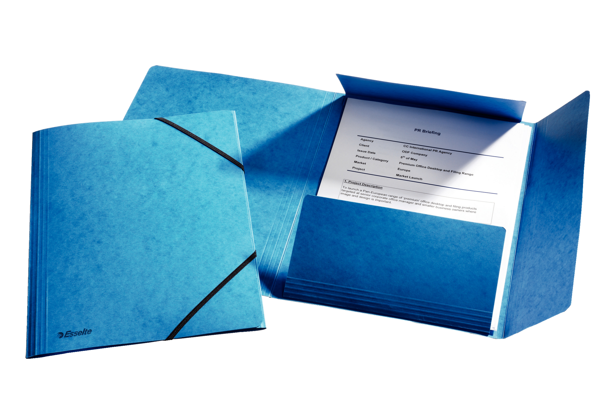 3-klap elastikmappe i klare farver til praktisk organisering af dokumenter. Mappen har kapacitet til 350 ark (80g papir) og er lavet i højkvalitets karton.