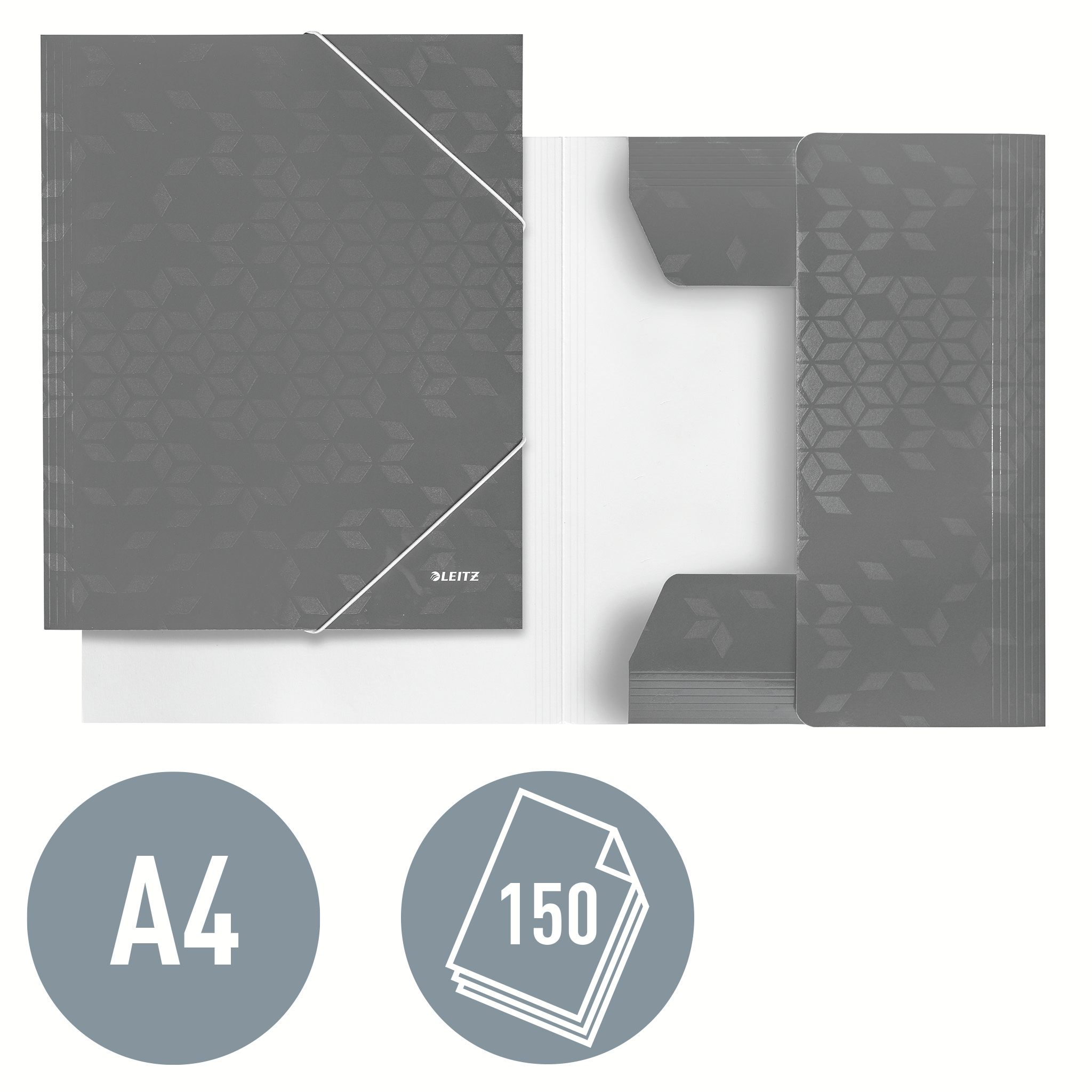 Lamineret, mønstret karton. Elastikbånd i hjørnerne. 150 arks kapacitet. A4