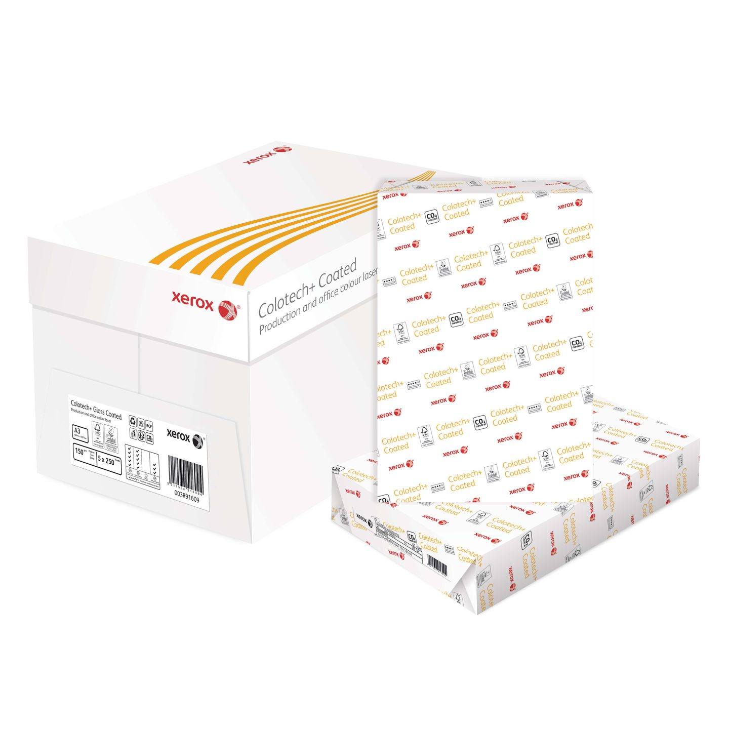 Dette Colotech+ Gloss Coated papir fra Xerox er coatet på begge sider med en ultraglat overflade. Den glatte overflade bidrager til driftsikkerheden ved brug i digitalfarveprintere.