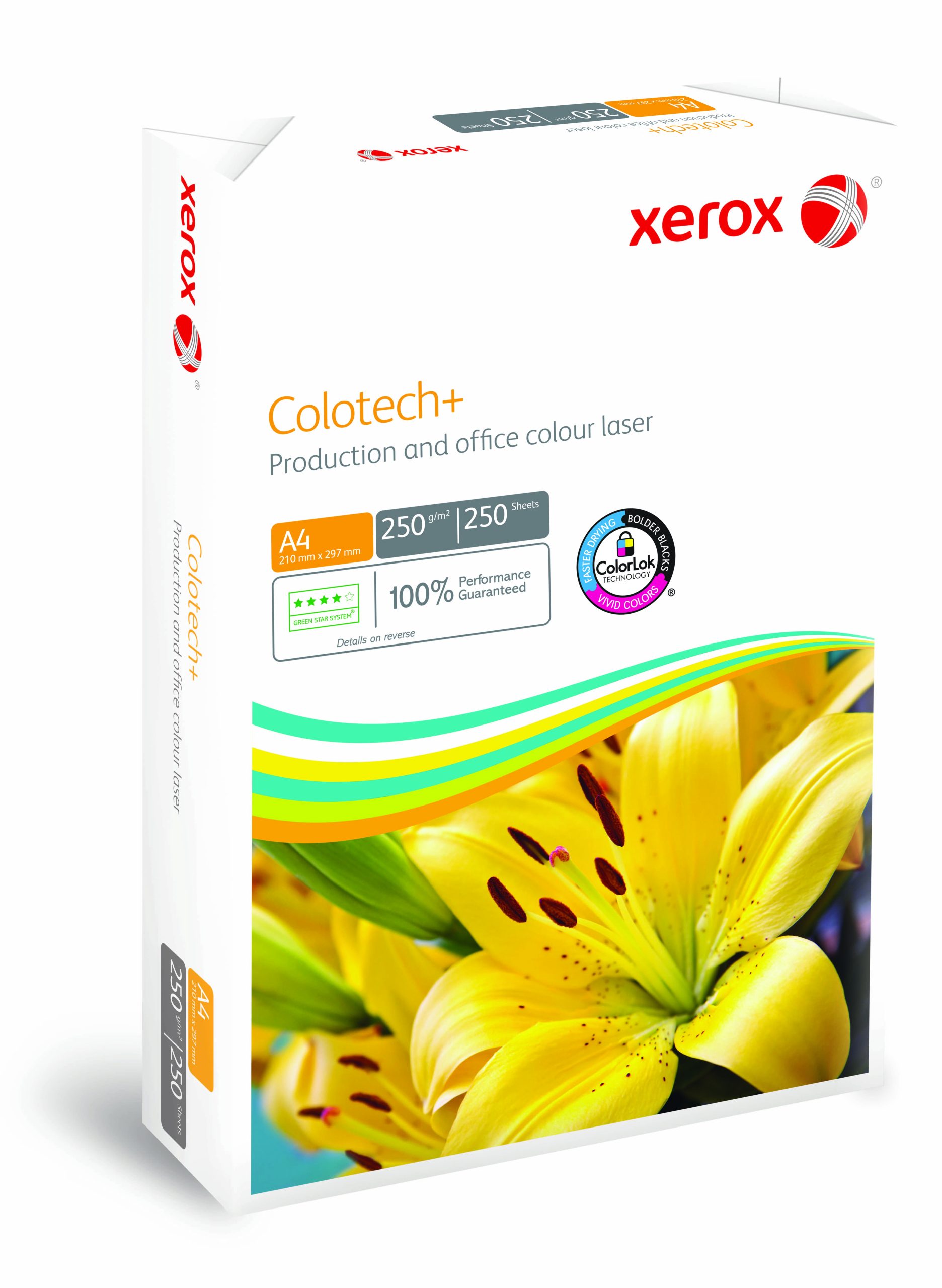 Pakke med 250 ark 250 grams A4 kopipapir der er udviklet specielt til digitaltryk og farvelaser. Colotech+ er allroundpapiret til kontoret når der skal laves slagkraftige præsentationer og rapporter. Kopipapiret giver en fremragende billedgengivelse og en utrolig jævn farvegengivelse.