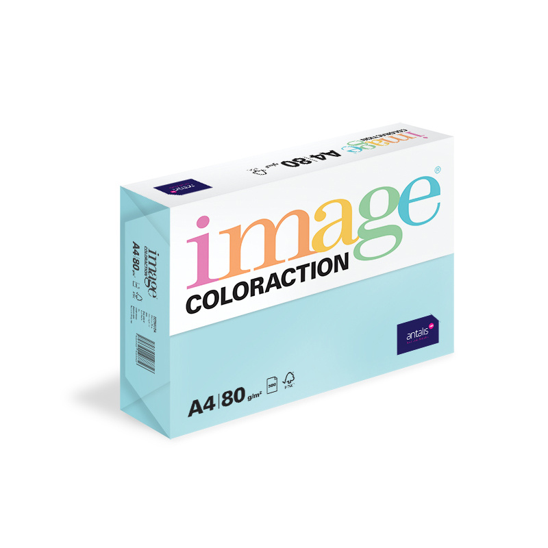 Blåt A4 kopipapir på 80 gram. Image Coloraction egner sig til kopiering, laserprint, inkjet-print og offsettryk. Papiret er matglittet kopipapir og en del af Image Coloraction serien som består af 32 farver. Kvalitet, lysægthed og ensartethed er i top. FSC certificeret. EU Ecolabel.