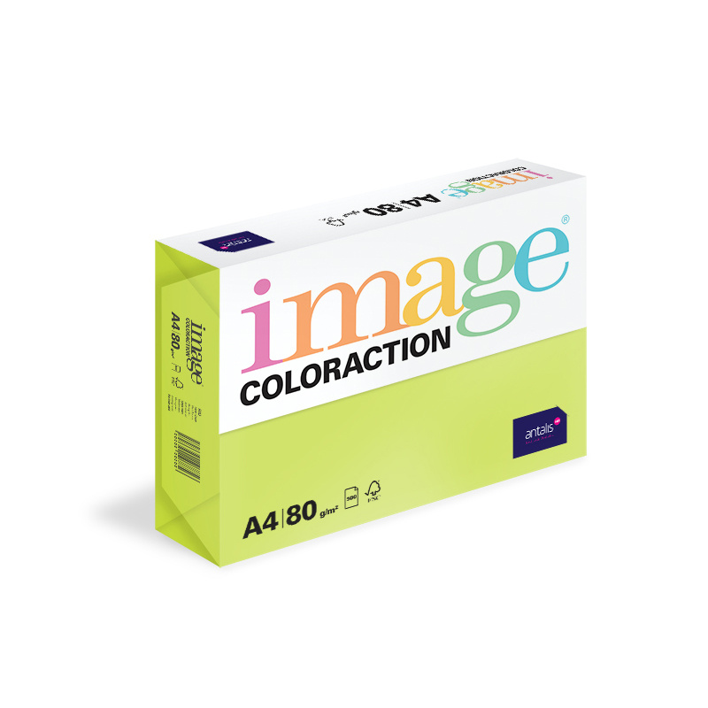 Grønt A4 kopipapir på 80 gram. Image Coloraction egner sig til kopiering, laserprint, inkjet-print og offsettryk. Papiret er matglittet kopipapir og en del af Image Coloraction serien som består af 32 farver. Kvalitet, lysægthed og ensartethed er i top. FSC certificeret. EU Ecolabel.