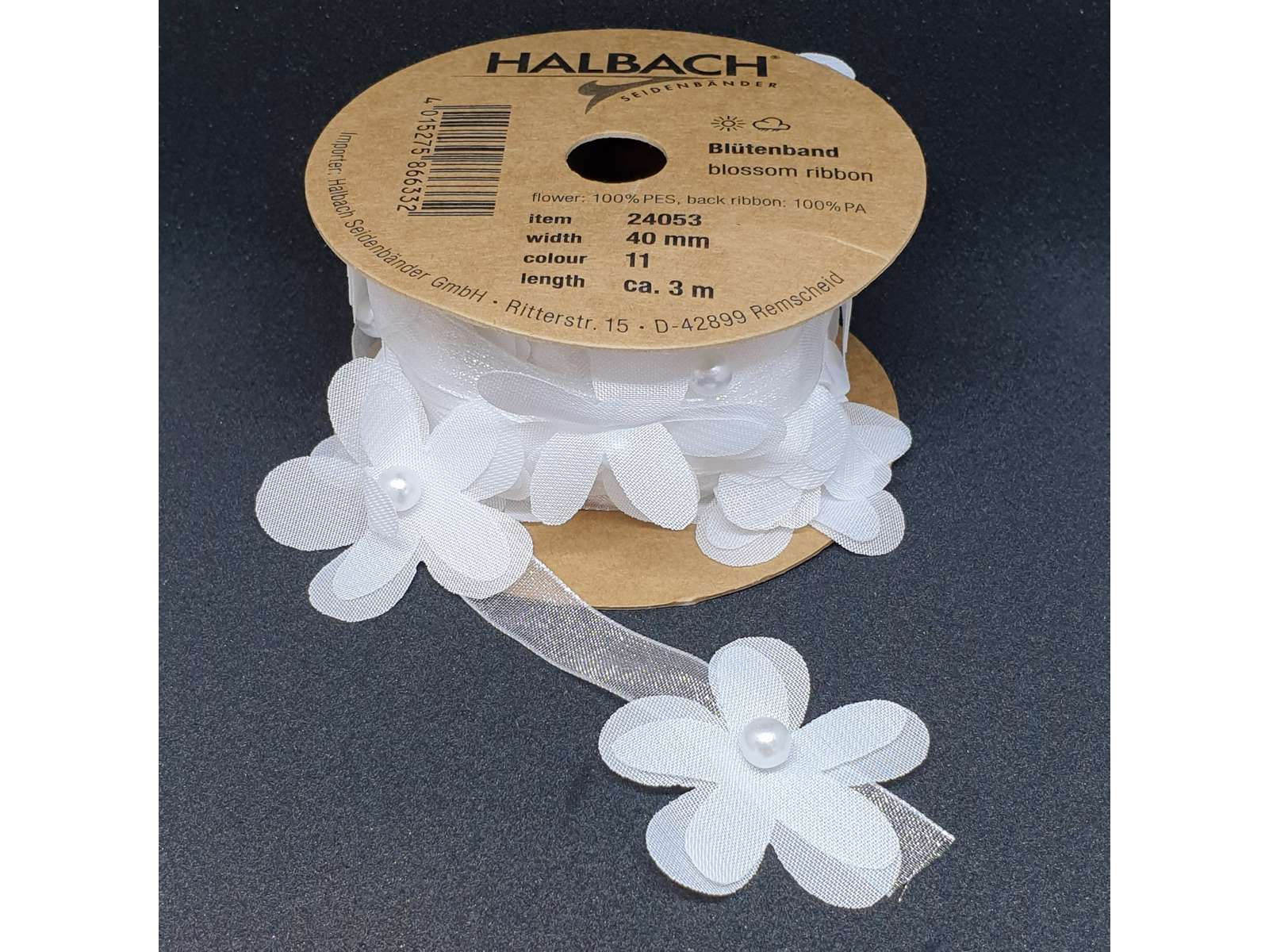 BÅND BLOMSTER HVID 3 M