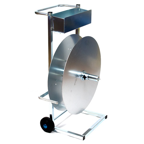 Strapbånd vogn på hjul til alle PP-bånd, der har kernediameter(hul i midten) på 200/280/406mm – dvs. til alle de størrelser, der findes.