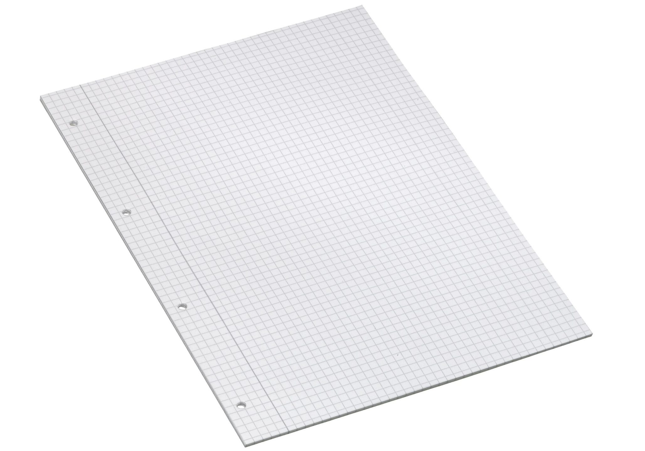 Hvid 80g papir, kvadretet 5x5mm, venstre margin, hullning (EU). Certificeret med EU-ecolabel, der garanterer den reducerede miljøpåvirkning af papirprodukter i hele deres livscyklus, fra råmaterialer til levetid. 500 ark. EU-ecolabel. 5 x 5 mm.