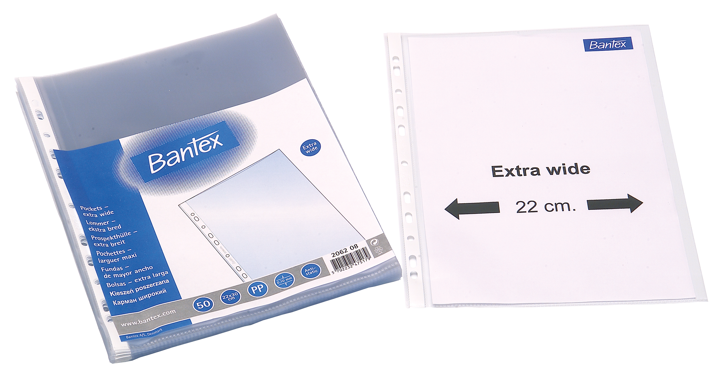 Lommen er fremstillet med et indvendigt format på 22 x 30 cm, således at den kan indeholde blade i A4-format, tykke rapporter o.l. Lommerne er i slidstærk, syrefri og kopisikker PP-folie.