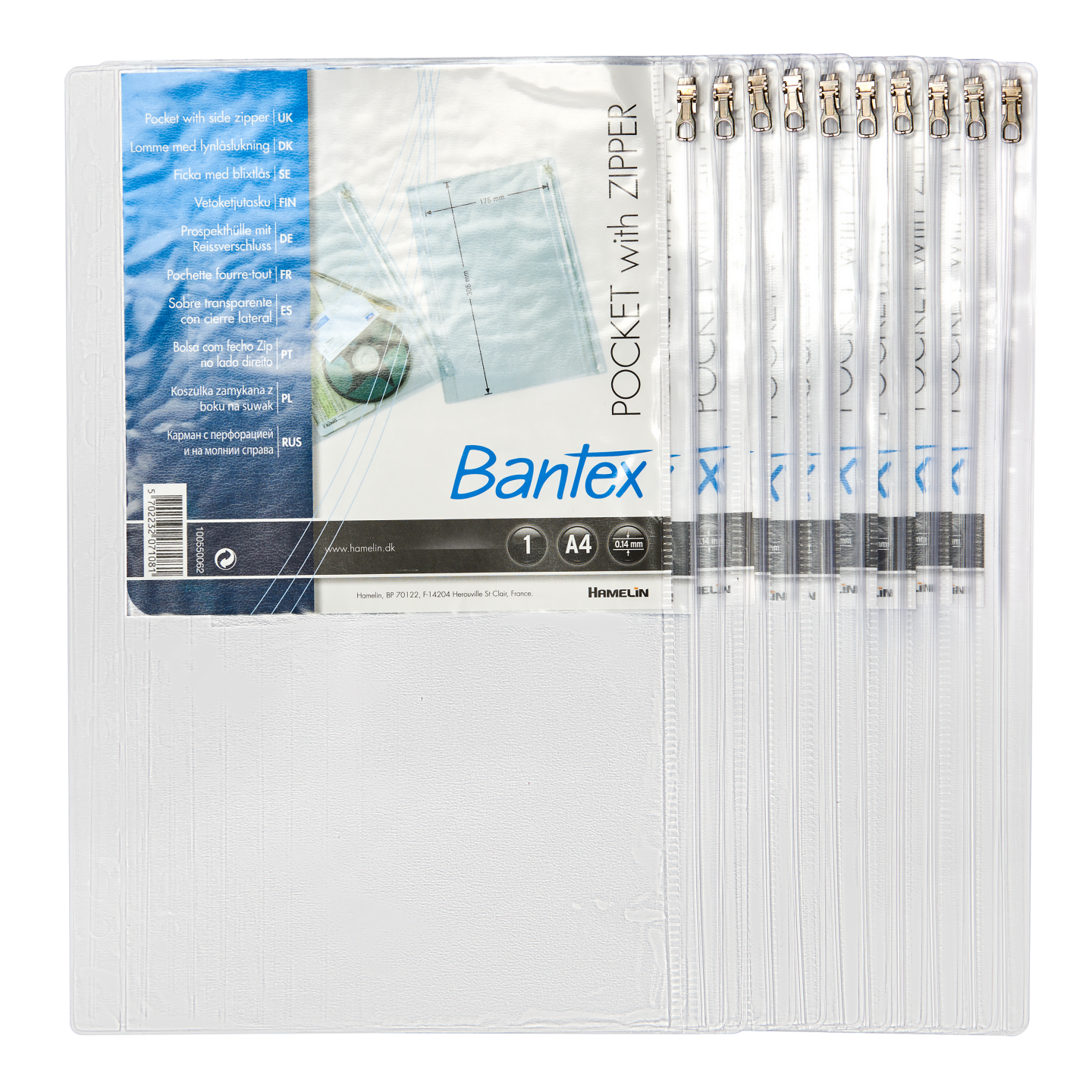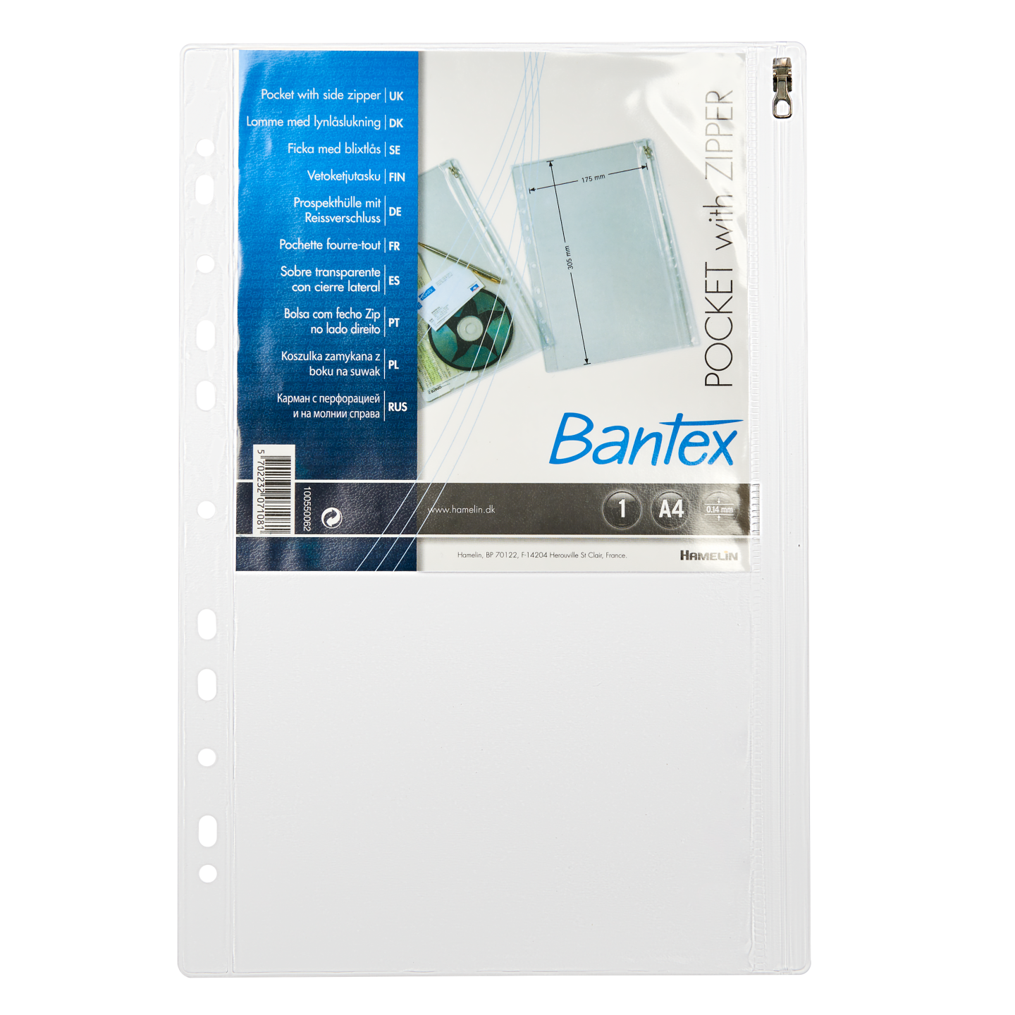 Lynlåslomme med huller til isætning i ringbind og lynlås, påsvejset i højre side. Lommens ydre mål svarer til A4-format. Idéel til opbevaring af løsdele på såvel kontoret som i hjemmet. Indvendig mål: 17,5 x 30,5 cm.
