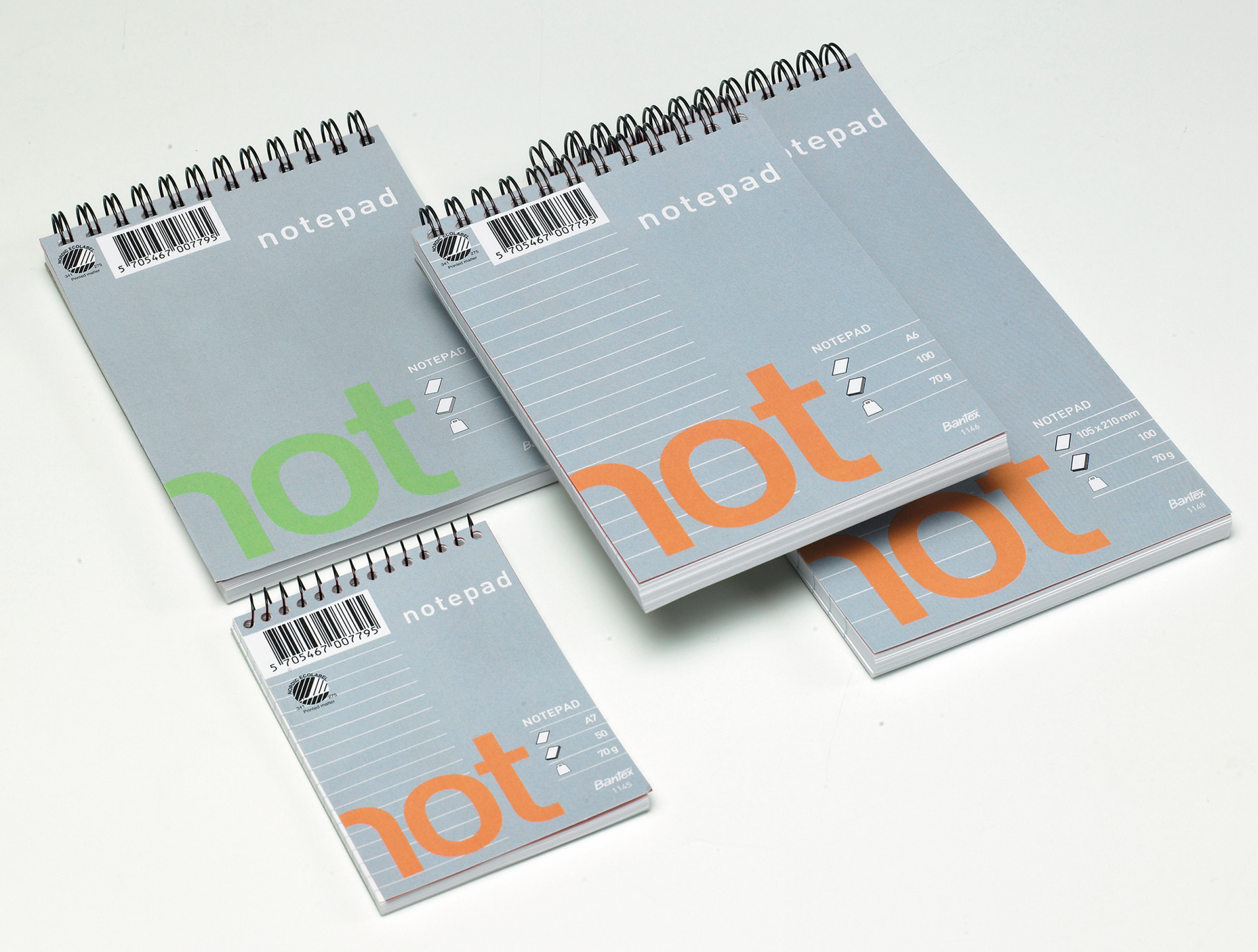 Hvid 70g papir, ulinjeret. Certificeret med den nordiske svan der garanterer den reducerede miljøpåvirkning af papirprodukter i hele deres livscyklus, fra råmaterialer til levetid. 100. Uhullet. Svanemærket. Mikroperforering.