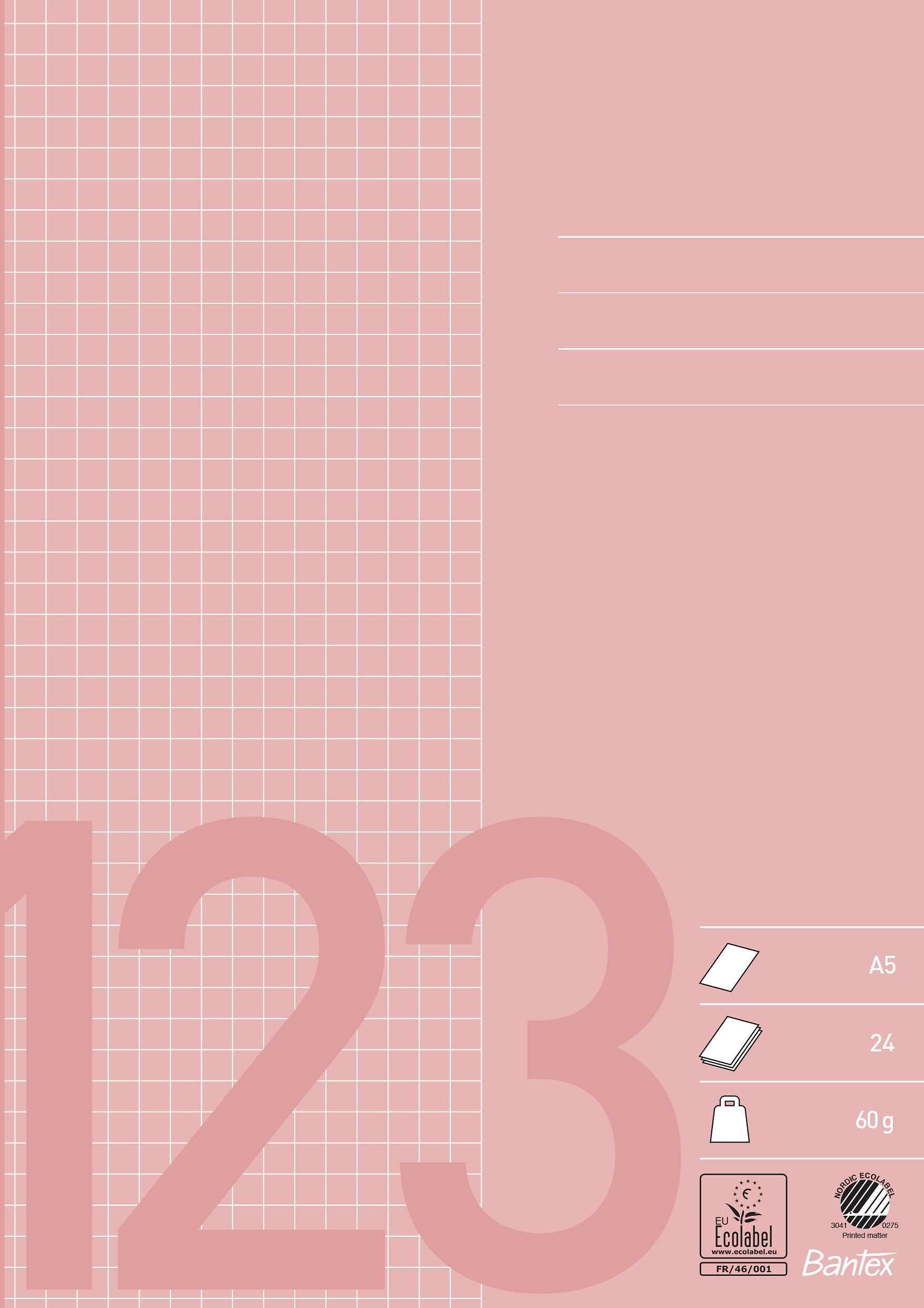 Hvid 60g papir. Certificeret med EU-ecolabel, der garanterer den reducerede miljøpåvirkning af papirprodukter i hele deres livscyklus, fra råmaterialer til levetid. 24 blade. EU-ecolabel. 5 x 5 mm.