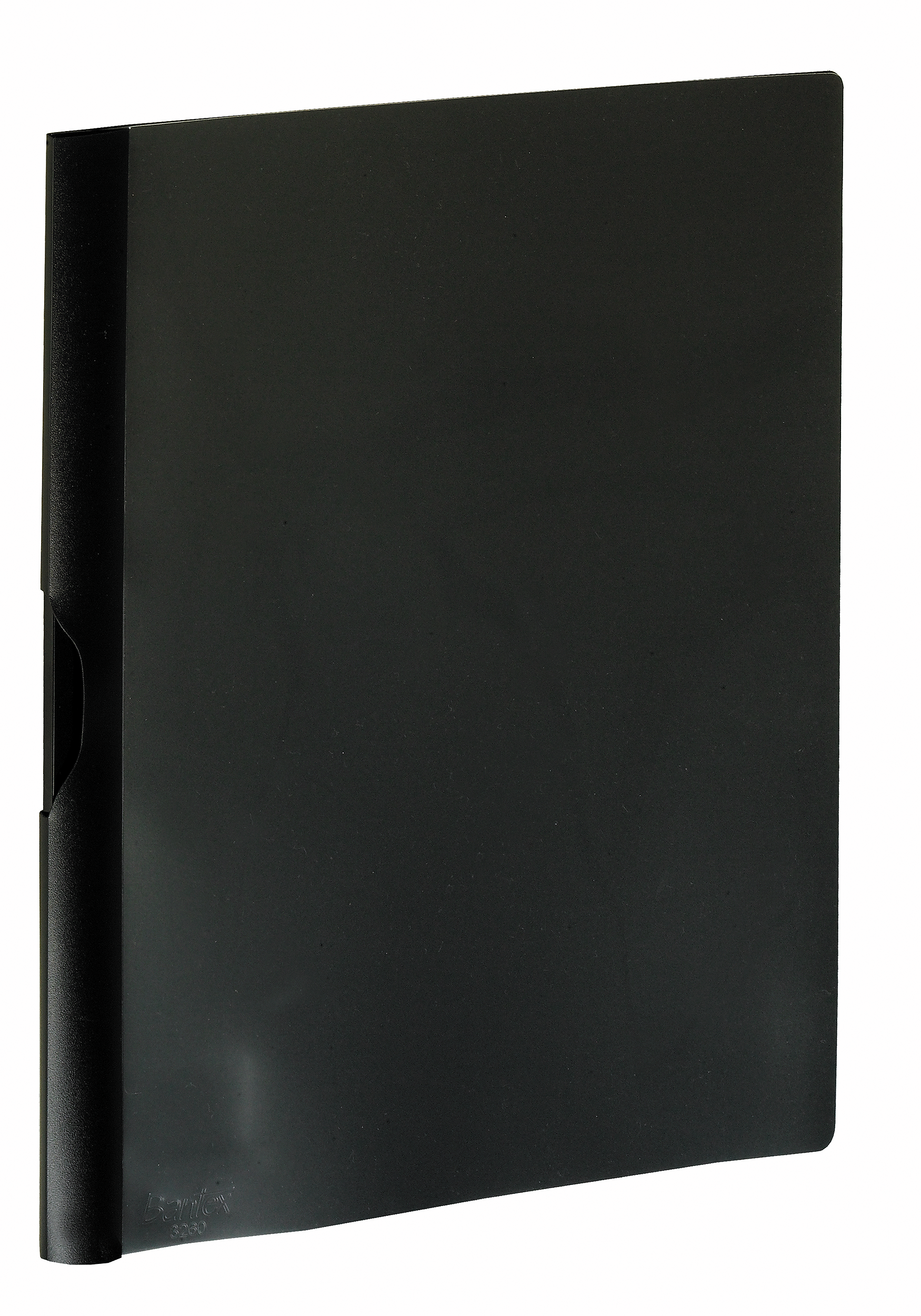 I slidstærkt PP, med klemme i ryggen, så man undgår at lave huller i papiret. Glasklar forside.