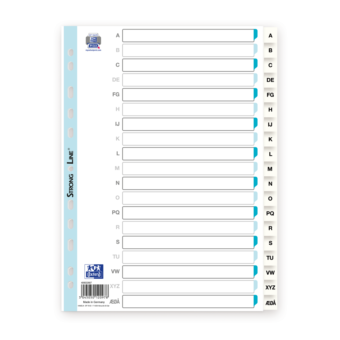Polypropylen. Alfabetiske faner. StrongLine® hulforstærkning. A4.