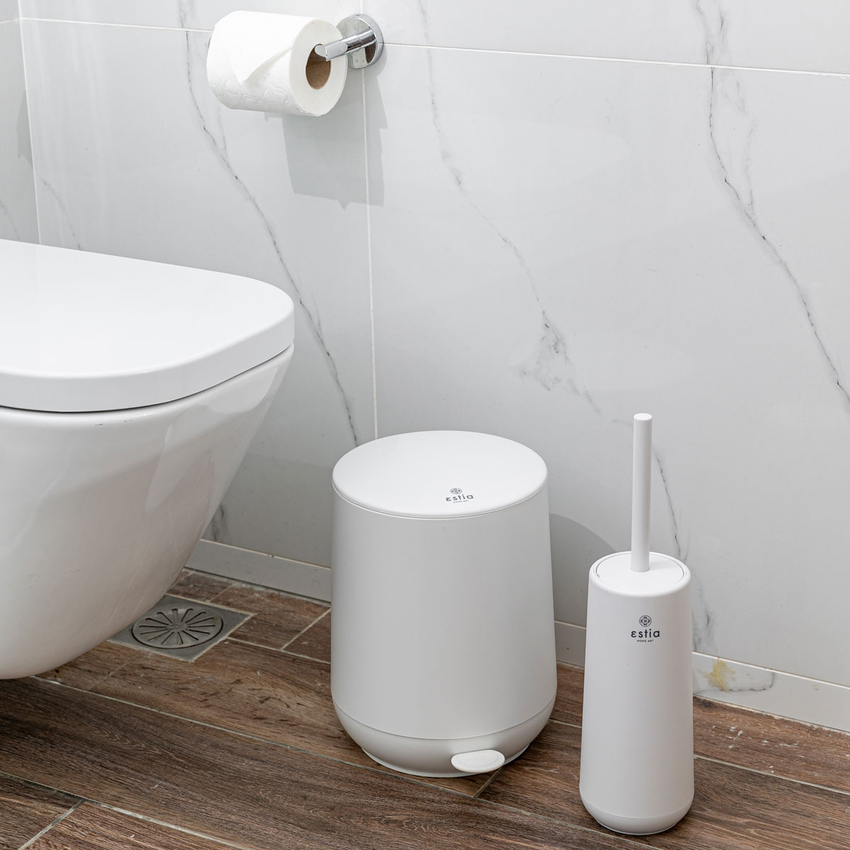 Hvid pedalspand med softclose 5 literHvid pedalspand til badeværelse med softclose. Med en kapacitet på 5 liter er den ideel til badeværelset, hvor der er behov for en kompakt, men rummelig løsning. Låget åbnes nemt med et tryk på pedalen og lukker lydløst takket være softclose-funktionen. Inderspanden i plast er let at tage ud, hvilket gør det nemt at tømme og rengøre pedalspanden. Overfladen på toiletspanden er matlakeret, hvilket giver et eksklusivt look og samtidig er smudsafvisende.Pedalspanden er en del af Fjord-serien, som også rummer toiletbørste og andre matchende badeværelsesprodukter i samme hvide farve. Toiletspanden kan købes separat eller som del af et komplet hvidt badeværelsessæt.Mål: H29,3 x B23,5 x D26,3 cmKapacitet: 5 liter