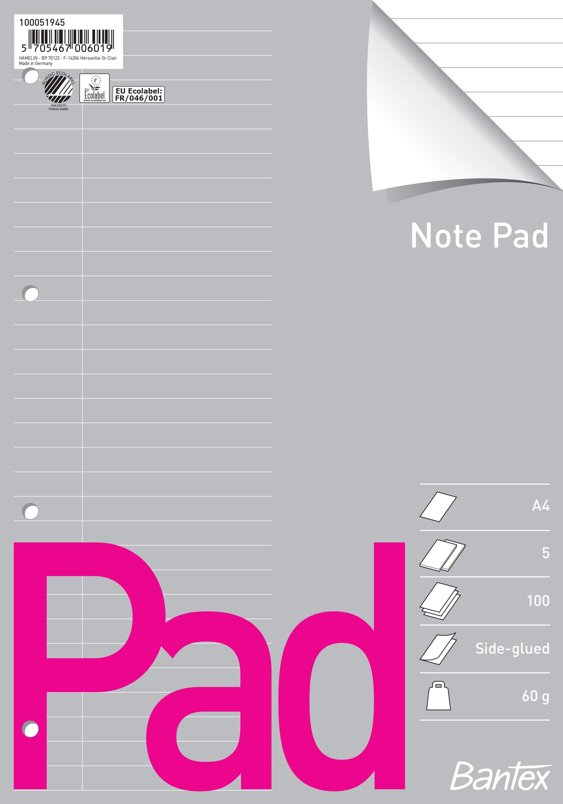 Bantex standardblok, A4, kvadreret, hullet, Bantex standardblokke er et højkvalitets standardprodukt til kladde og notepapir. Standardblokke er svanemærkede.