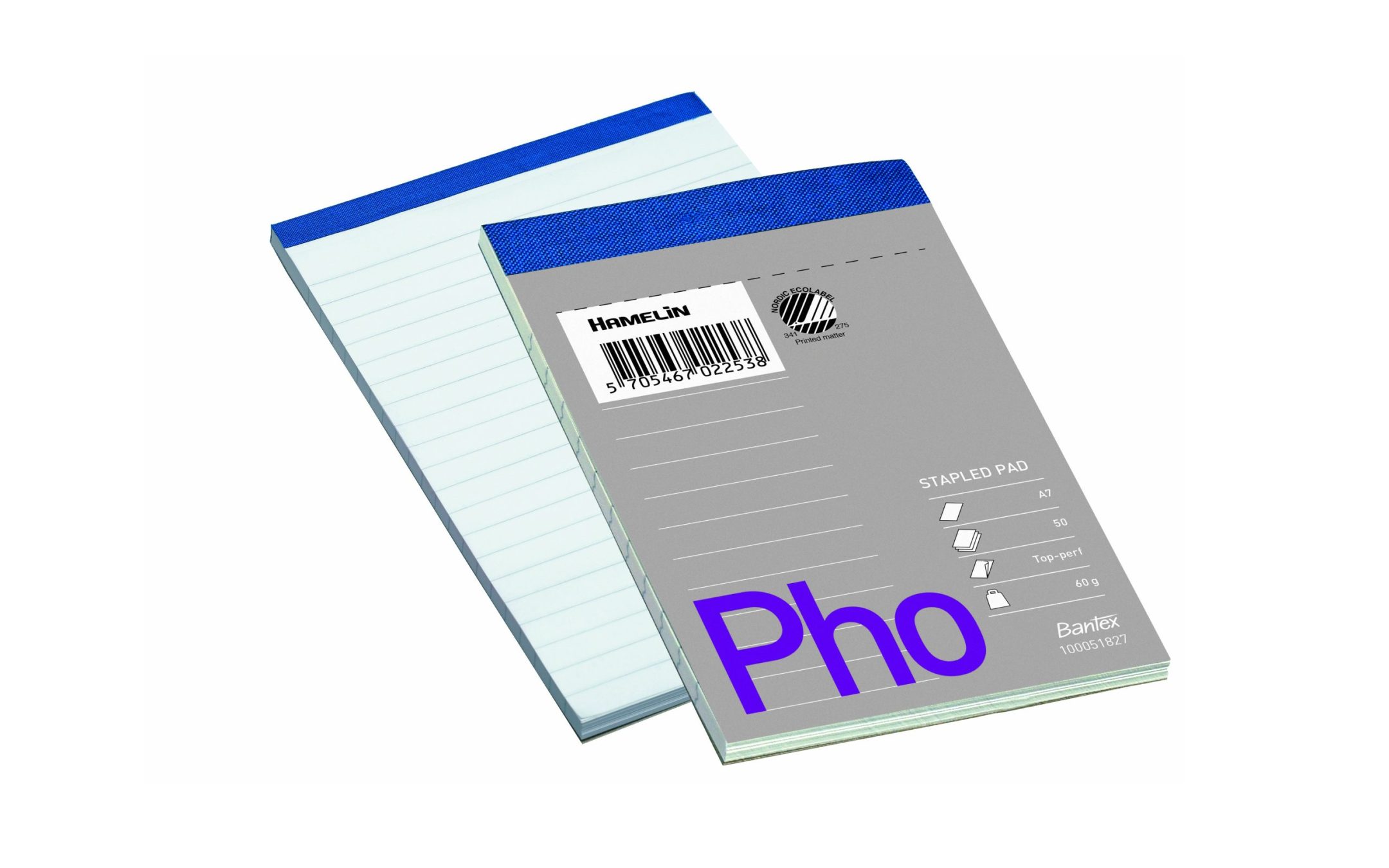Telefonblok med stub. Blok med 100 blade uden omslag. Med perforering.