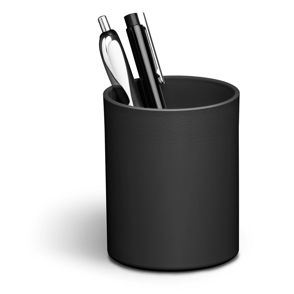 Praktisk og robust penneholder Stort volumen Fremstillet af genbrugsplast i Blue Angel-kvalitet Til kuglepenne, sakse, overstregningstusser osv. Mål: Ø 80 mm, højde 100 mm
