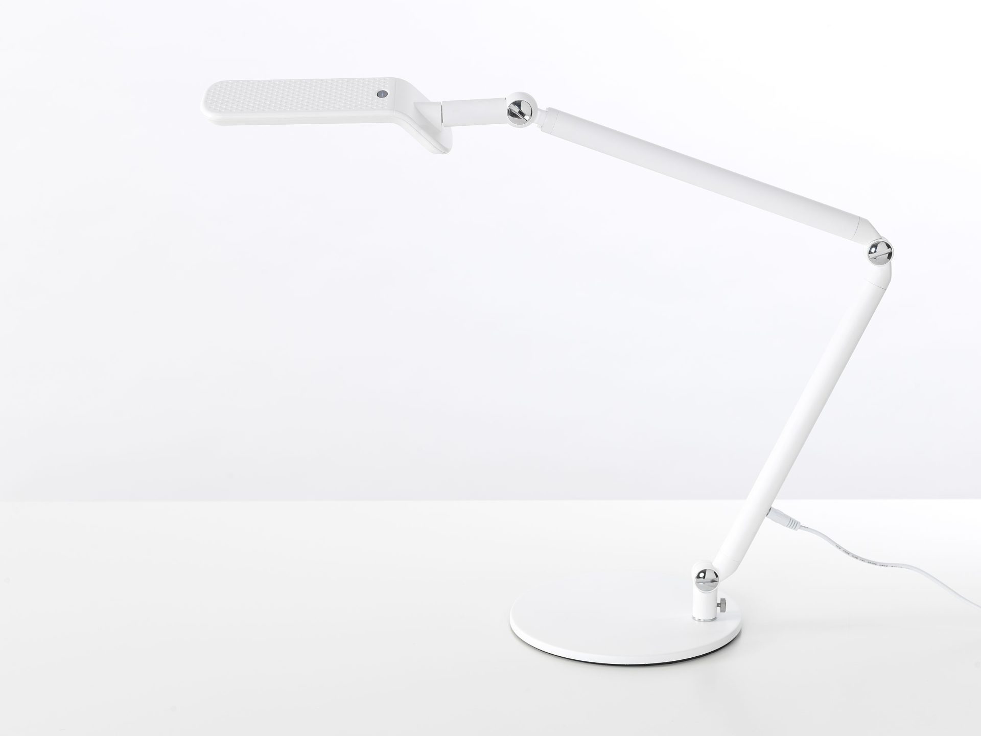Hvid LED arbejdslampe i et funktionelt og praktisk design. Lampen har en tynd bordfod, der giver et stilfuldt indtryk. Desuden er den meget fleksibel og giver dig derfor mulighed for at dreje lyset derhen, hvor du har brug for det.
