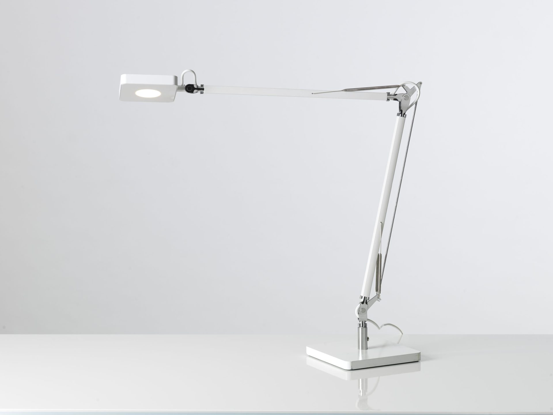 Elegant skrivebordslampe med et stilrent, kvadratisk design. Bordlampen giver et symmetrisk og retningsbestemt lys, der dog har en stor rækkevidde. Lamper med symmetrisk lys passer godt til dig, der arbejder med små detaljer eller inspektioner.