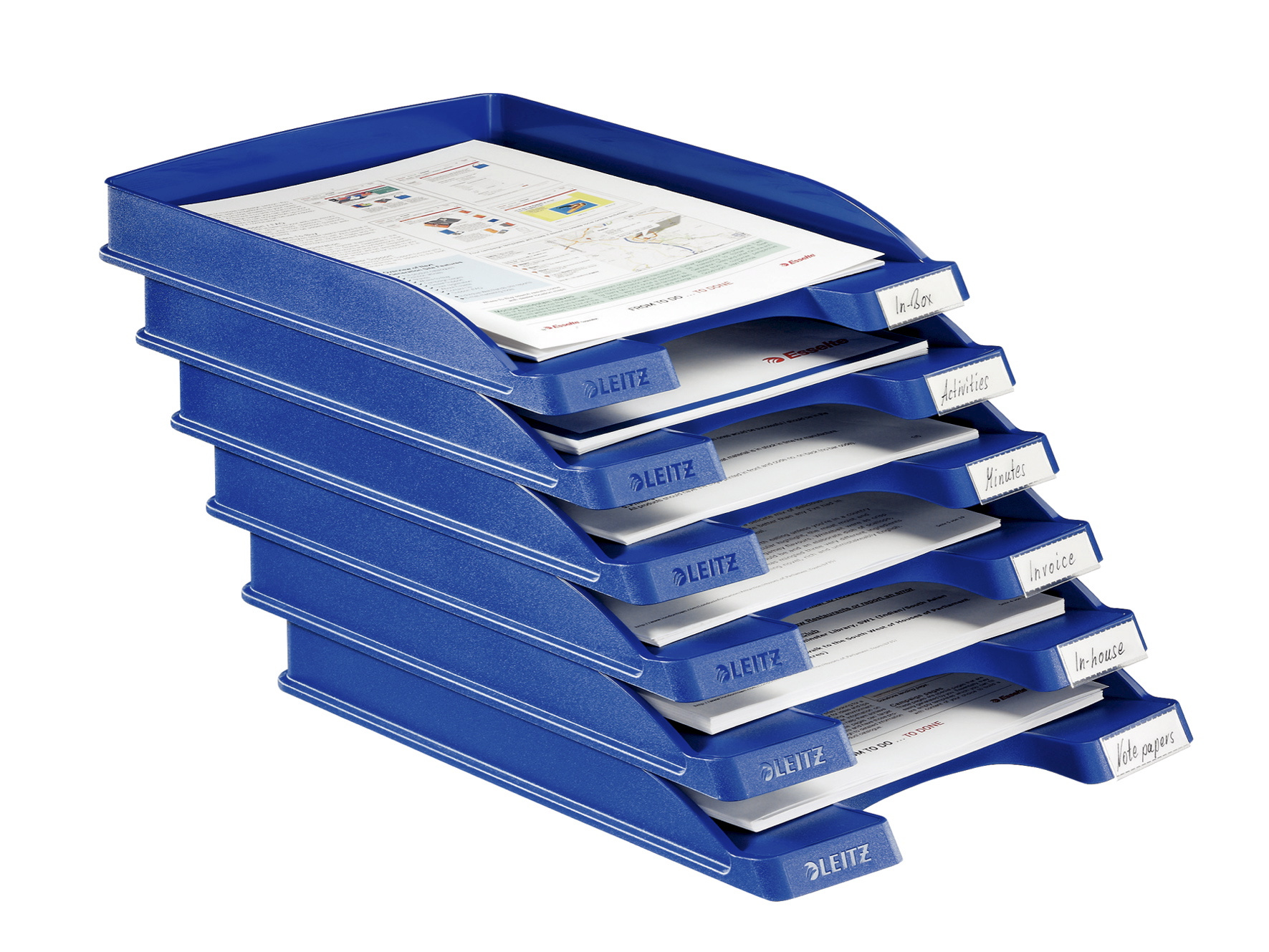 Blå brevbakke fra Leitz