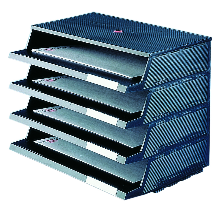 Tværvendt TWIN PANORAMA Brevbakke med 4 bakker. PANORAMA Brevbakken er let at bruge. TWIN PANORAMA Brevbakken har ingen forkant, og intet udtræk. TWIN PANORAMA Brevbakken har en åben langside, så det er nemt at få fat i breve, papirer og andet indhold. Det er let at stable flere TWIN PANORAMA Brevbakker ovenpå hinanden, for at få endnu mere plads til dine papirer. En fleksibel og praktisk måde at holde orden på skrivebordet på. TWIN PANORAMA Brevbakkerne kan hænges på væggen, for at spare plads på skrivebordet.