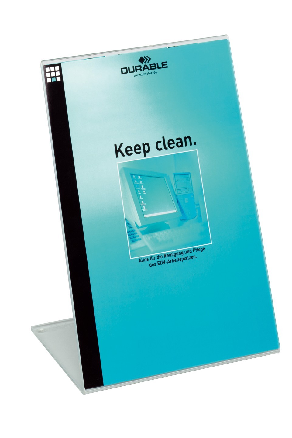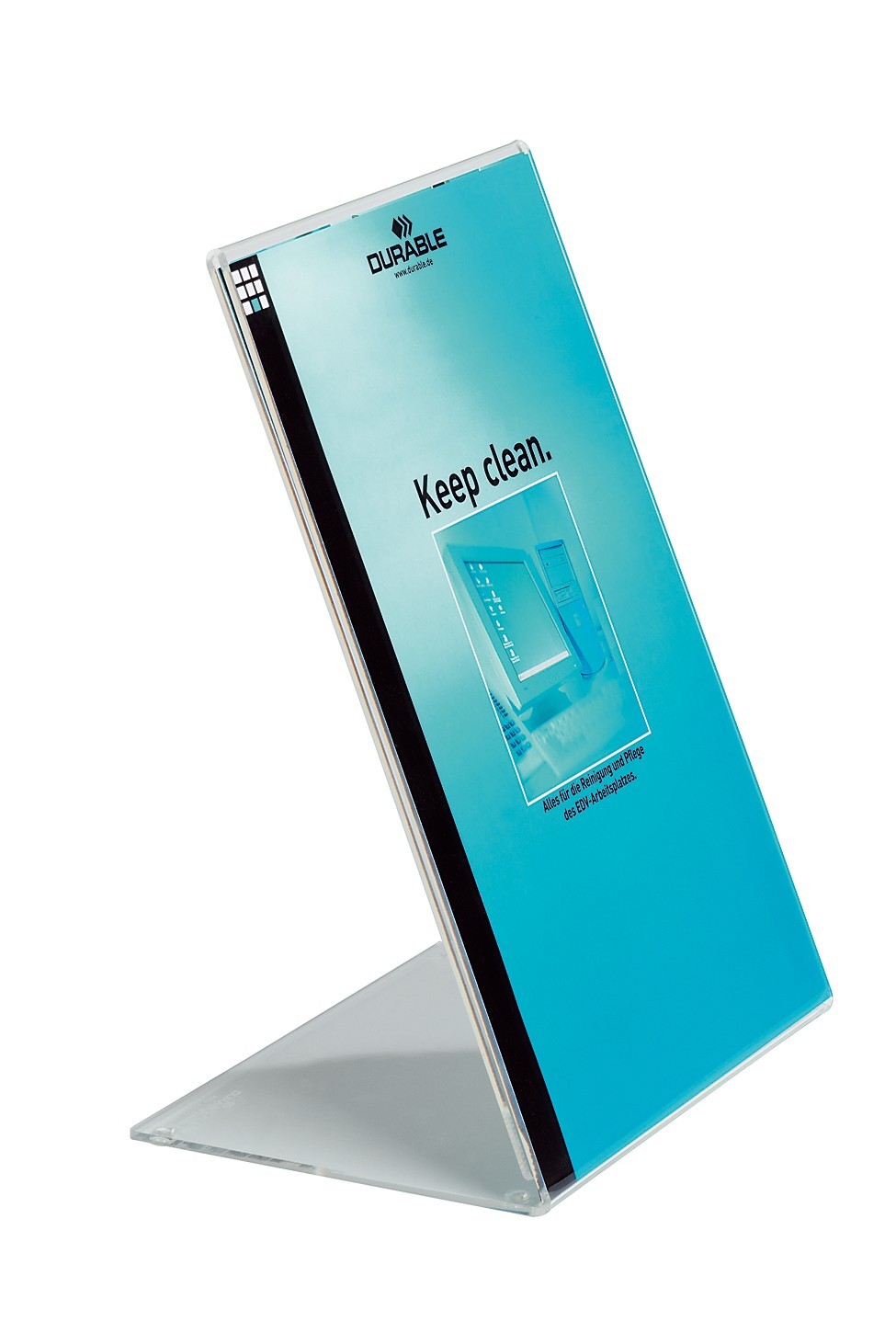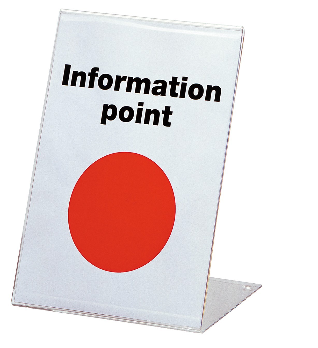 Brochureholder af akryl som passer til placering i lobbyer, udstillinger m.m. Optimal læsbarhed gennem ergonomisk synsvinkel. Stabil fod med gummi fødder. Til dokumenter i A4 format. Minimum ordre to stykker. Mål: 210x290x90 (BxHxD)