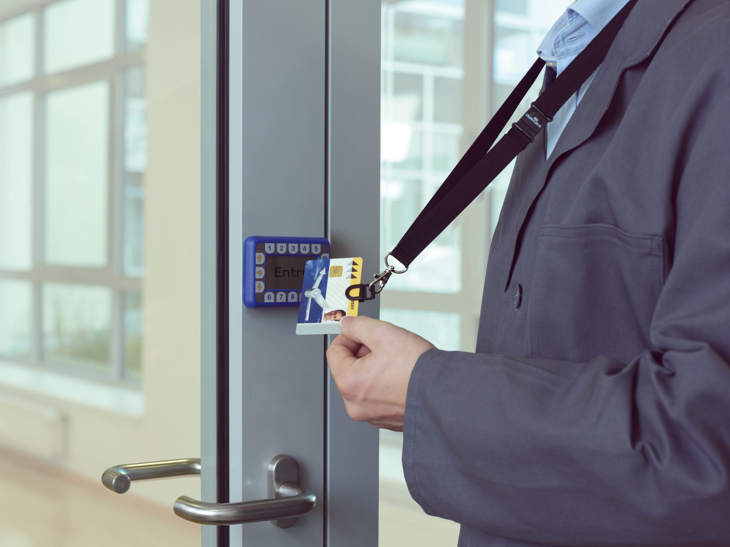 Kortholder med 20mm bred halssnor til hurtig fastgørelse af plastikkort, ID-kort og visitkort med en maksimal tykkelse på 1 mm. Indenliggende gummipude holder kortet sikkert på plads. Halssnor med sikkerhed udgivelse, der åbner, hvis halssnoren bliver fanget. Længde 44 cm.