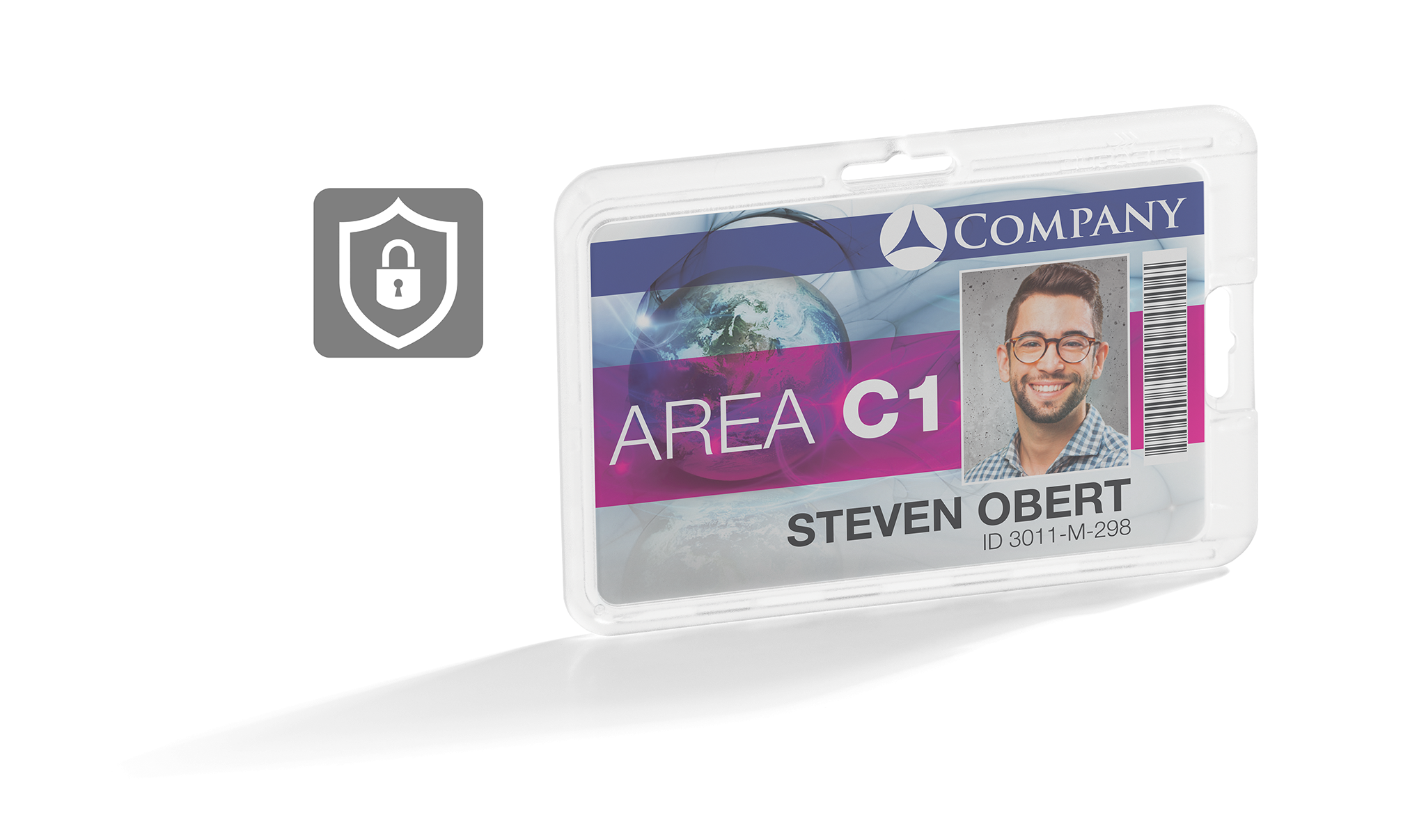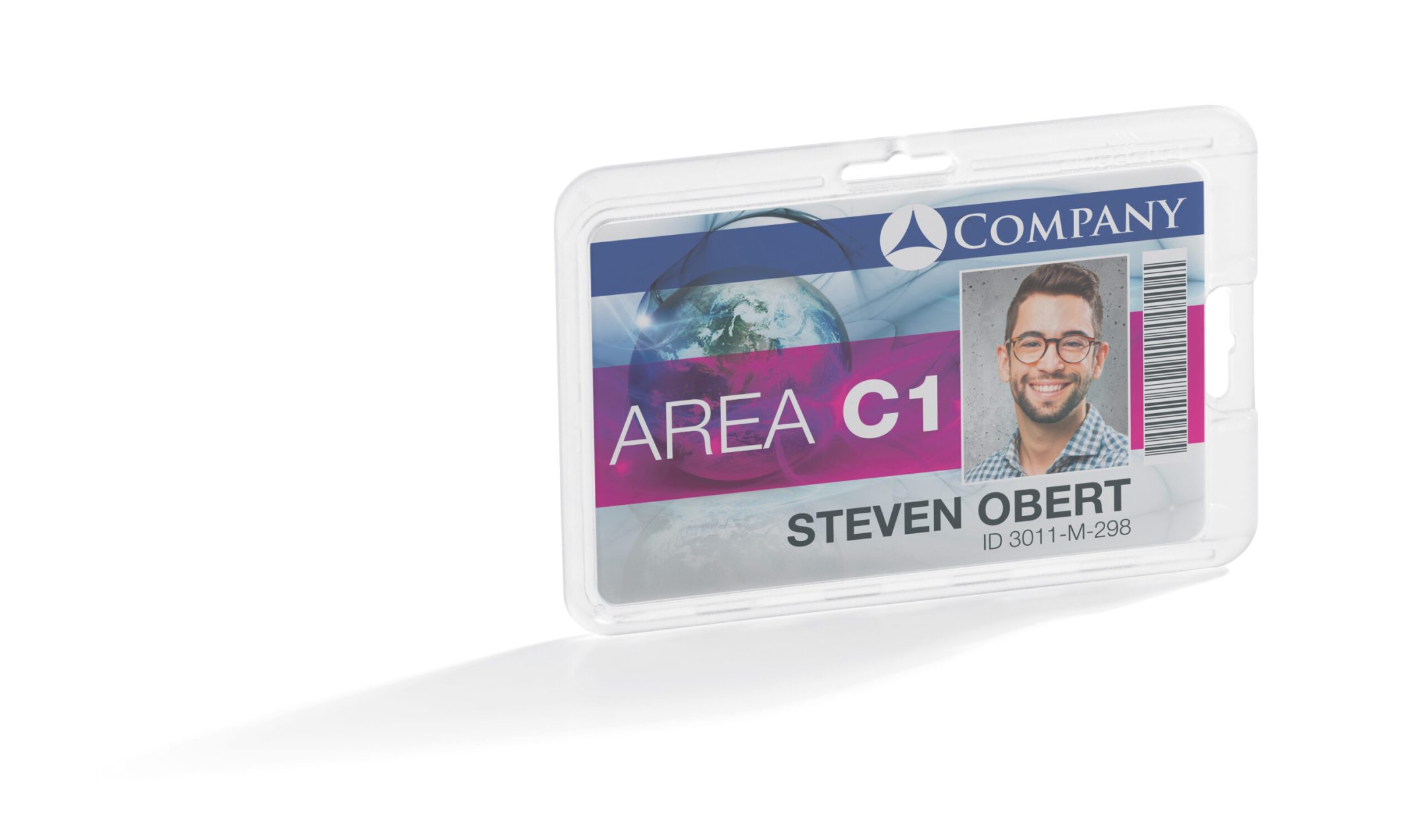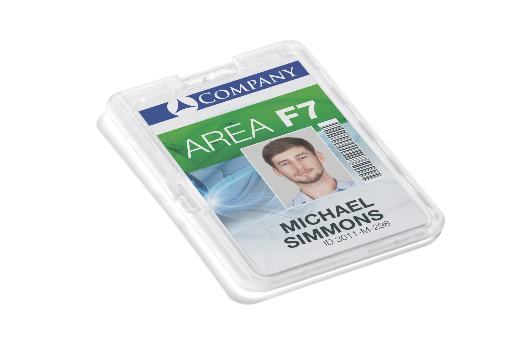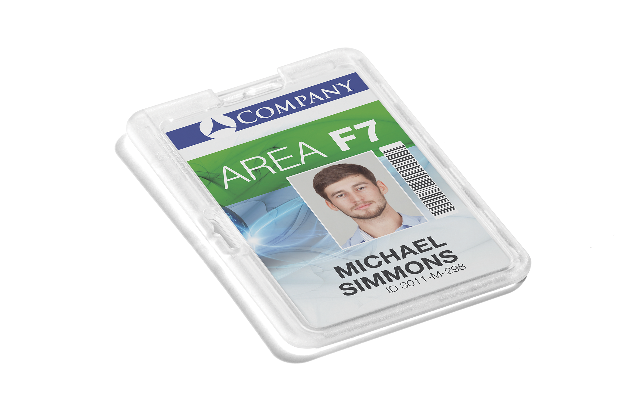 Identitets- og adgangskort skal beskyttes, men stadig være klar til brug. DURABLEs store udvalg af forskellige tilbehør og optimerede kortholdere tilbyder den rigtige løsning for alle. • Kortholder til 1 kort • Meget praktisk på grund af det tynde design • Låsemekanisme til at holde kortet permanent i holderen • Designet til arbejdsområder med høje sikkerhedskrav, da kortet ikke kan fjernes fra holderen • Ikke egnet til kort med chips eller kort med magnetstriber da disse ikke kan aflæses igennem kortholderen. • Fremstillet af stødsikker polycarbonat • Kan bruges enten med kæde, halssnor eller yoyo • Kan bruges i liggende eller stående format • Indvendige dimensioner: 54 x 87 mm (H x B)