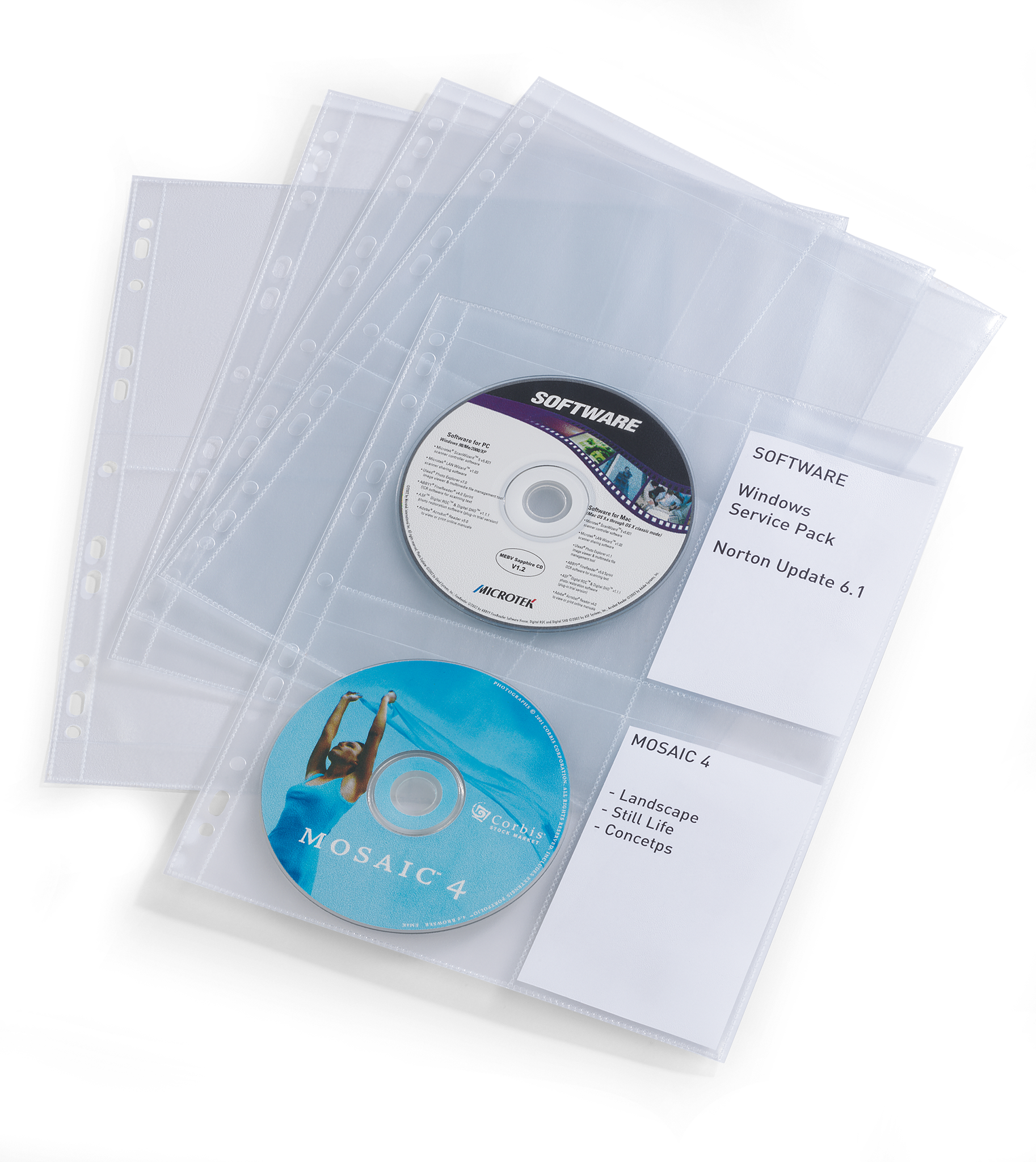 Cd/dvd cover light m arkiverbar med etiketlomme10 lommer til 4 cd’er/dvd’er. Med plads til individuelle indeksark eller hæfter. Universal stansning.