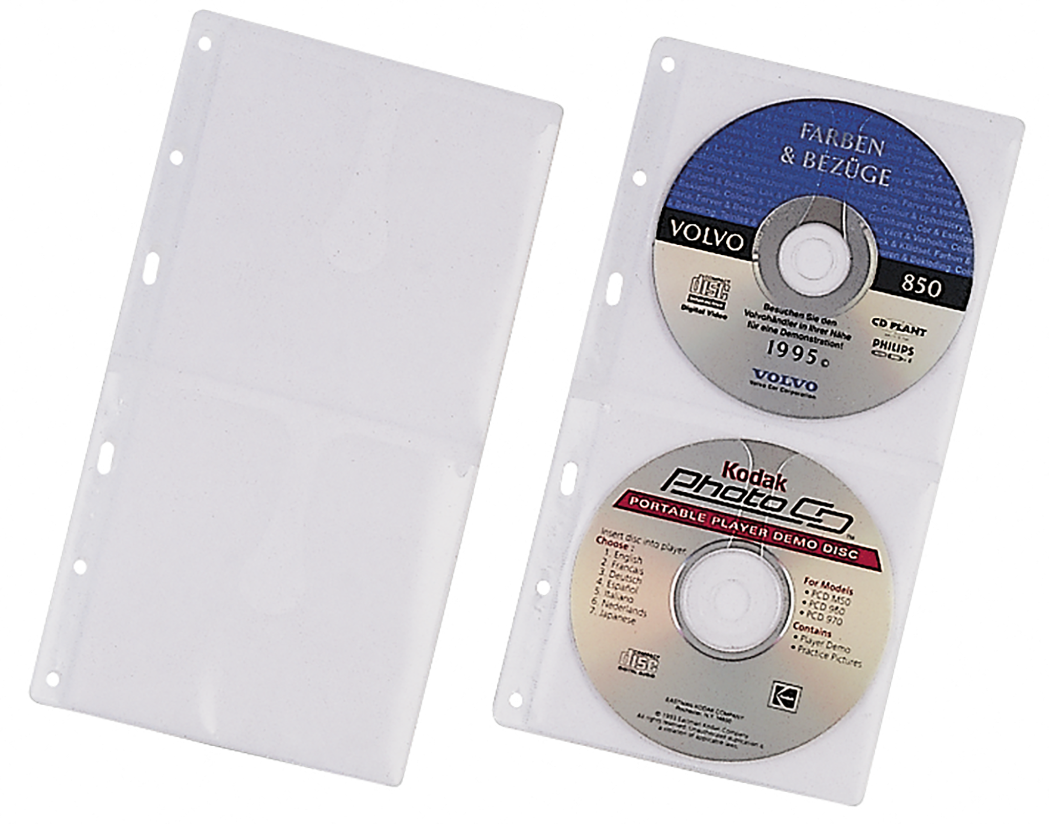 CD/DVD-lomme med huller til arkivering i brevordnere og ringbind Med fleeceindlæg Også udvidelsessæt til ringbind, artikelnr. 5204 Til 2 CD?er/DVD?er