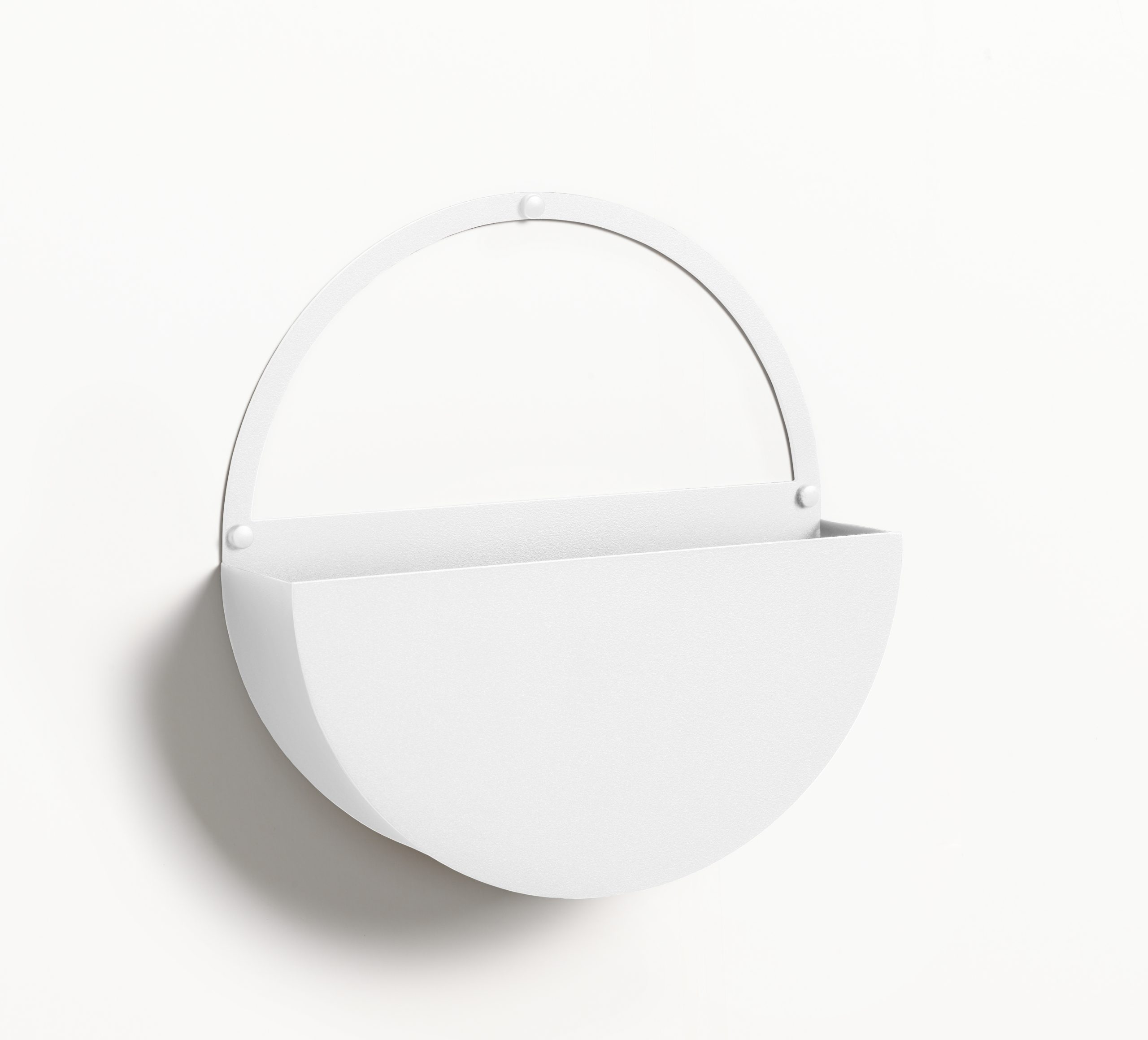 Ø 25 cm. Cirkel Opbevaringshylde, 6,5 x 25 cm., Hvid metalFunktionel og elegant oplbevaringshylde.Brug holderen til opbevaring af forskellige småting, eller som planteskjuler.Hvis du bruger den som planteskjuler, skal du putte en lille plastik pose omkring jorden, da boksen ikke er vandtæt.Hylden har magnetisk effekt, så den også kan bruges med magneter.