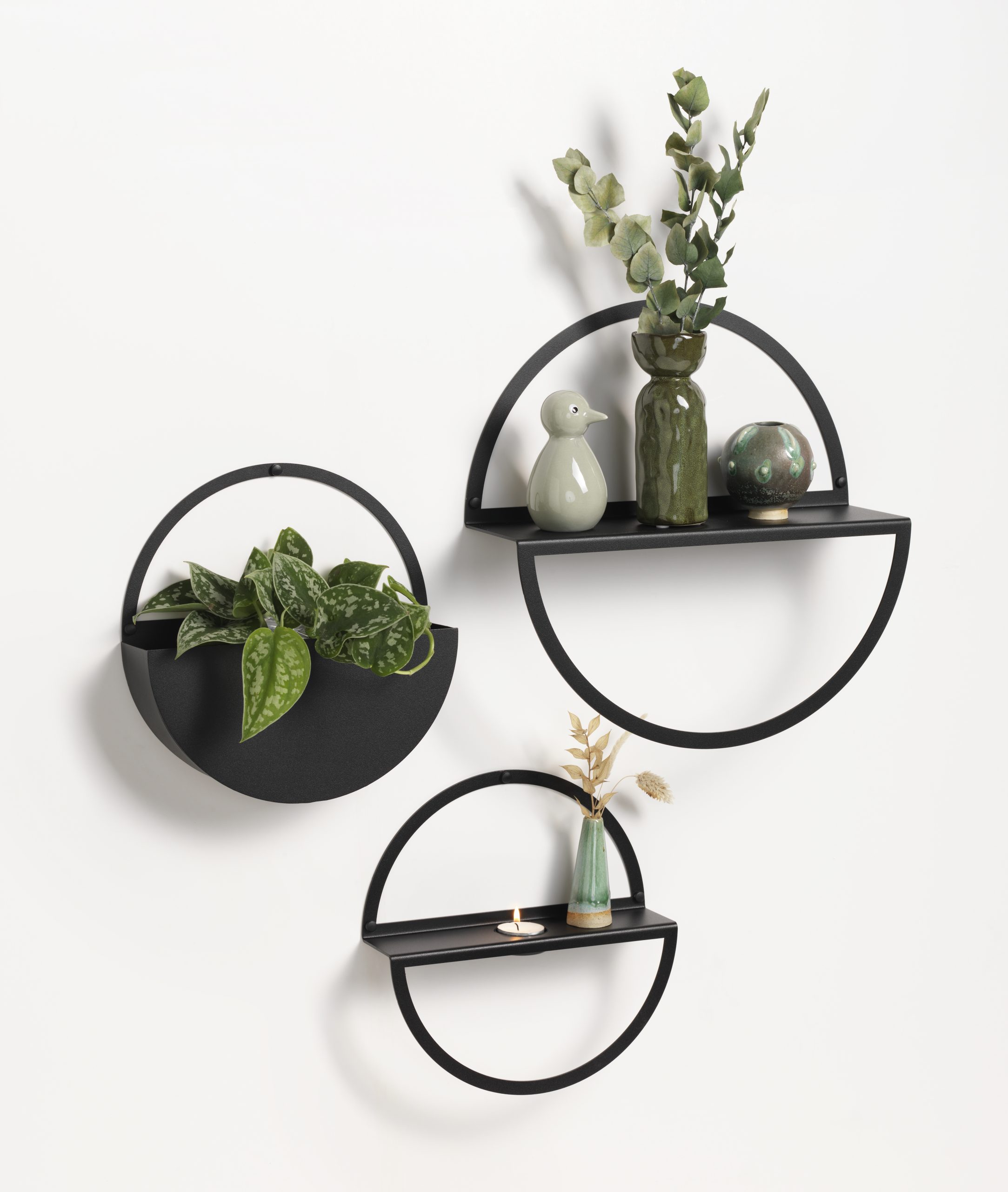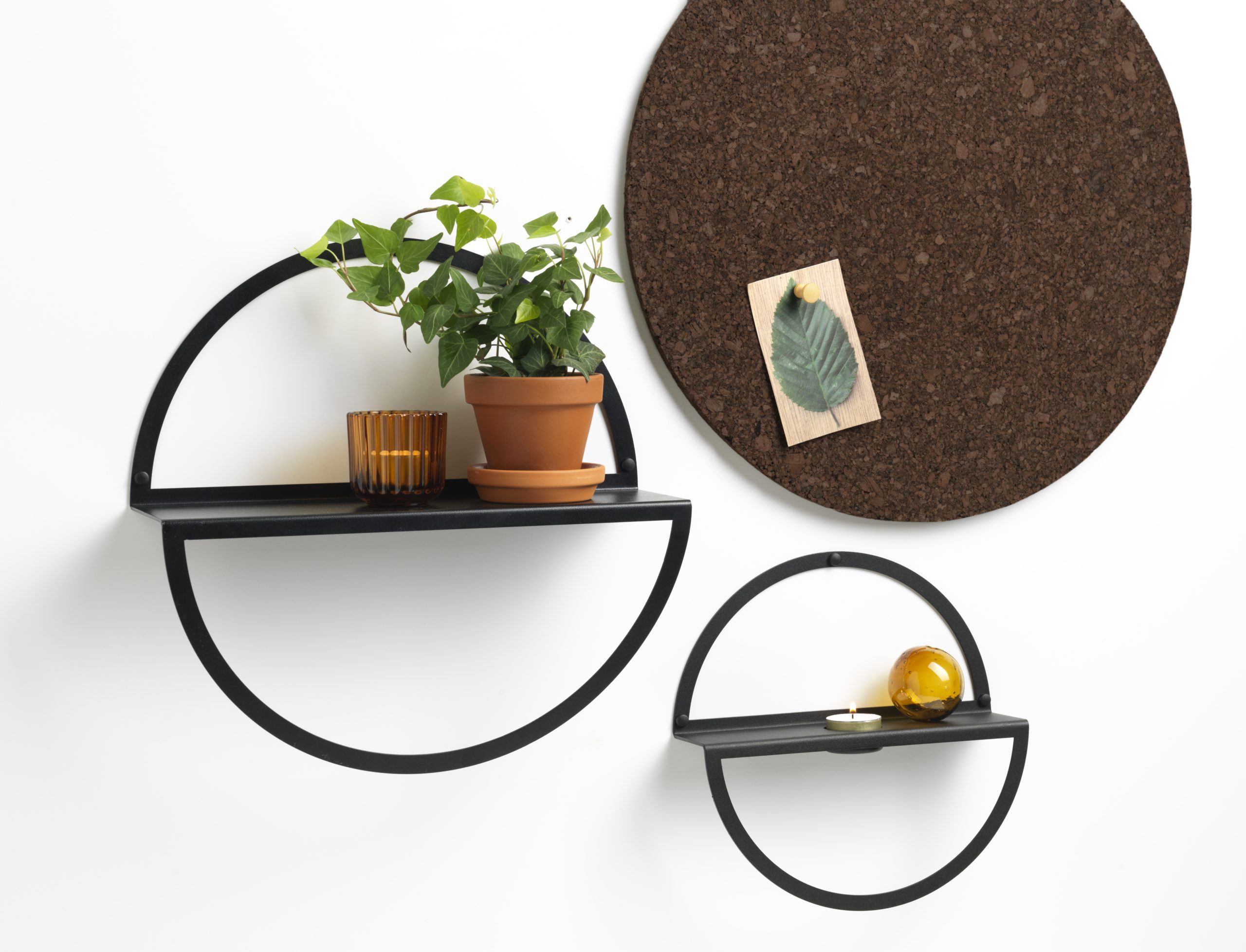35 cm. Circle shelf, Black metal