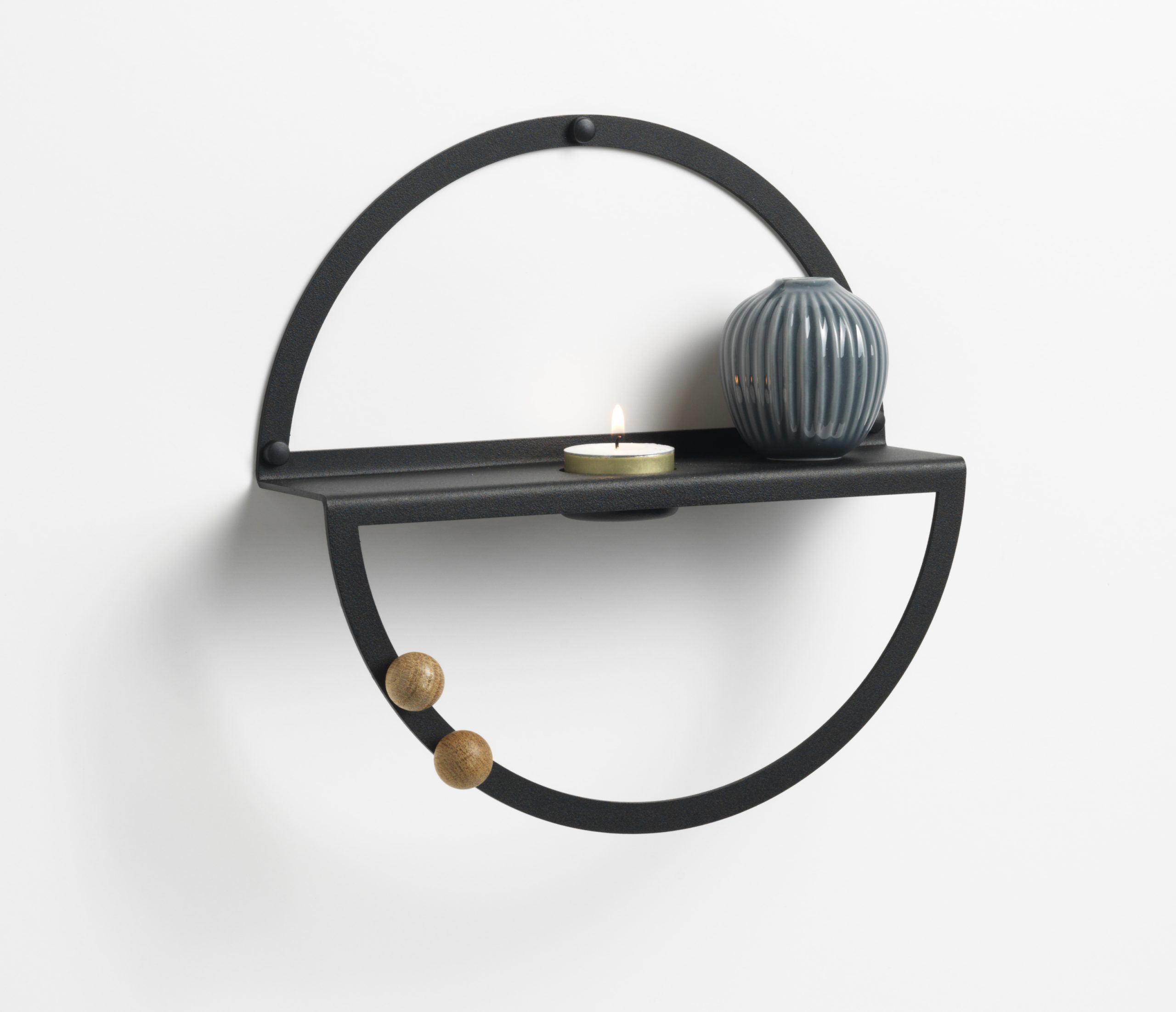 25 cm. Circle Tealight shelf, Black metal