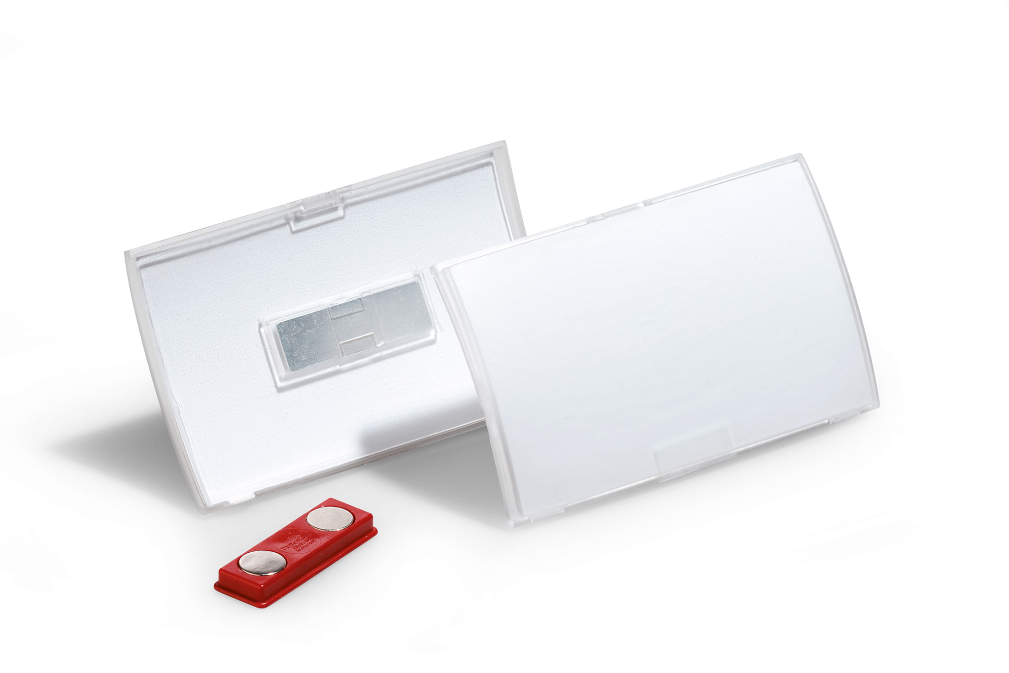 Konferencedeltagere, firmabesøgende, personale på messer, i butikker, servicefag og sælgere – listen er lang over steder, hvor der er behov for navneskilte i forskellige størrelser, design og fastgørelsesmuligheder. Click Fold-serien er fremstillet af 70 % genanvendt polypropylenplast, unik klikmekanisme, så det er nemt at udskifte etiketten, som stadig sidder sikkert på plads. Dette navneskilt på 54×90 mm har en magnetisk fastgørelse, der sikre at tøjet ikke ødelægges. BEMÆRK! Ikke egnet til personer med pacemakere. Hvide etiketter i en strimmel er inkluderet. Etiketter på A4-ark til udskrivning i en printer kan bestilles separat. Brug den gratis DURAPRINT®-software på www.duraprint.dk til at skabe og udskrive attraktive navnemærker. Tilbehør: Badgemaker® etiketter på A4-ark til udskrivning i printere, artikelnummer 142802.