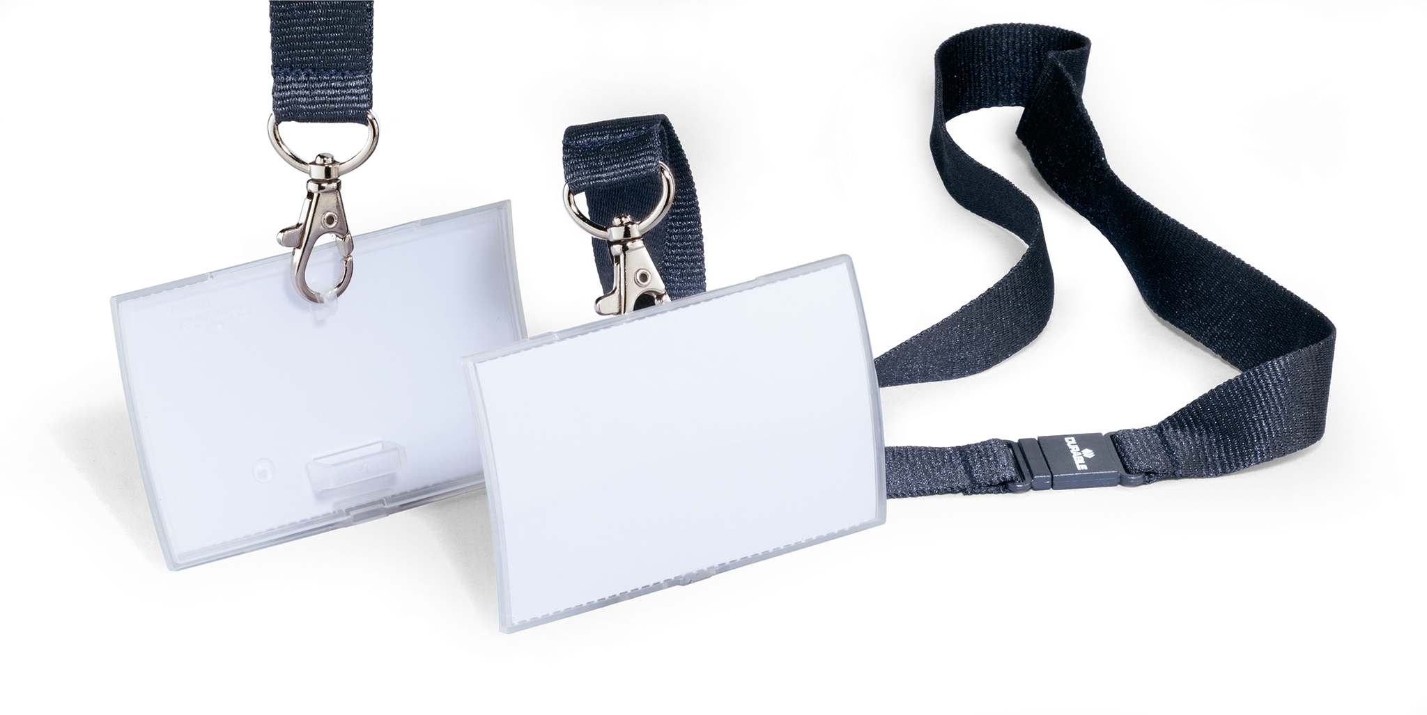 Konferencedeltagere, firmabesøgende, personale på messer, i butikker, servicefag og sælgere – listen er lang over steder, hvor der er behov for navneskilte i forskellige størrelser, design og fastgørelsesmuligheder. Click Fold-serien er fremstillet af 70 % genanvendt polypropylenplast, unik klikmekanisme, så det er nemt at udskifte etiketten, som stadig sidder sikkert på plads. Dette navneskilt på 54×90 mm leveres komplet med en 2 cm bred og 88 cm lang halssnor med sikkerhedslås. Hvide etiketter i en strimmel er inkluderet. Etiketter på A4-ark til udskrivning i en printer kan bestilles separat. Brug den gratis DURAPRINT®-software på www.duraprint.dk til at skabe og udskrive attraktive navnemærker. Tilbehør: Badgemaker® etiketter på A4-ark til udskrivning i printere, artikelnummer 142802.