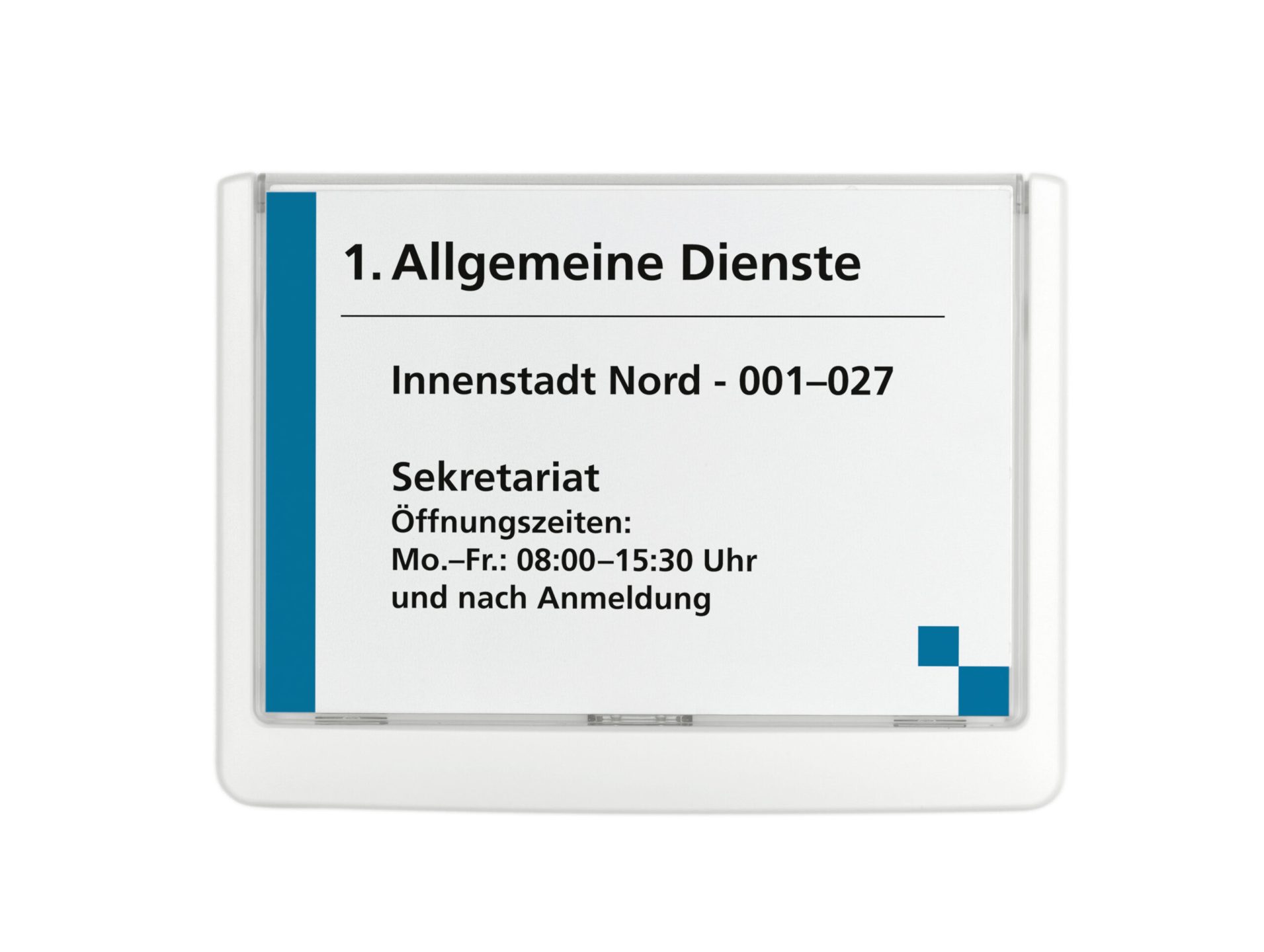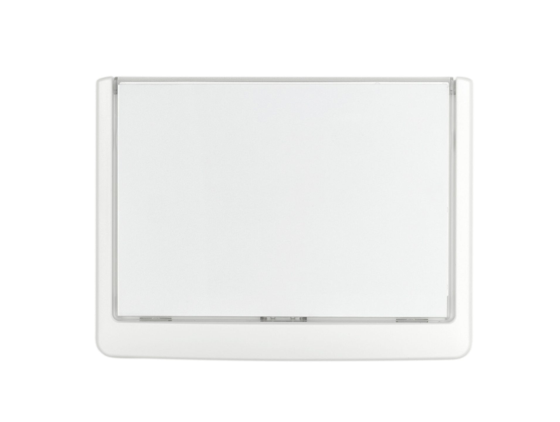 CLICK SIGN dør/vægskiltesystem med farvet kant og klar front. Let at udskifte indstik, blot løfte og sænke transparente frontpanel. Leveres med skruer, klæbepuder og neutralt indstiksark. Ekstra indstiksark kan bestilles separat (varenr.. 485102) Design selv en personlig designet indstiksetiket til skiltet med gratis skabelon på www.duraprint.dk Mål: 149×105,5mm A6 tvær