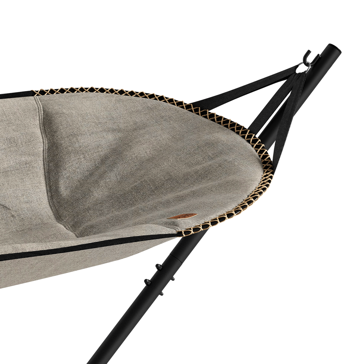 Nyd Cobana hængekøjen udendørs året rundt. Takket være det vandafvisende og lysægte Cobana stof kan du være sikker på, at din hængekøje holder i mange år fremover. Cobana Hammock er udstyret med et aluminiumstativ og inviterer til ren afslapning og hygge i solen.