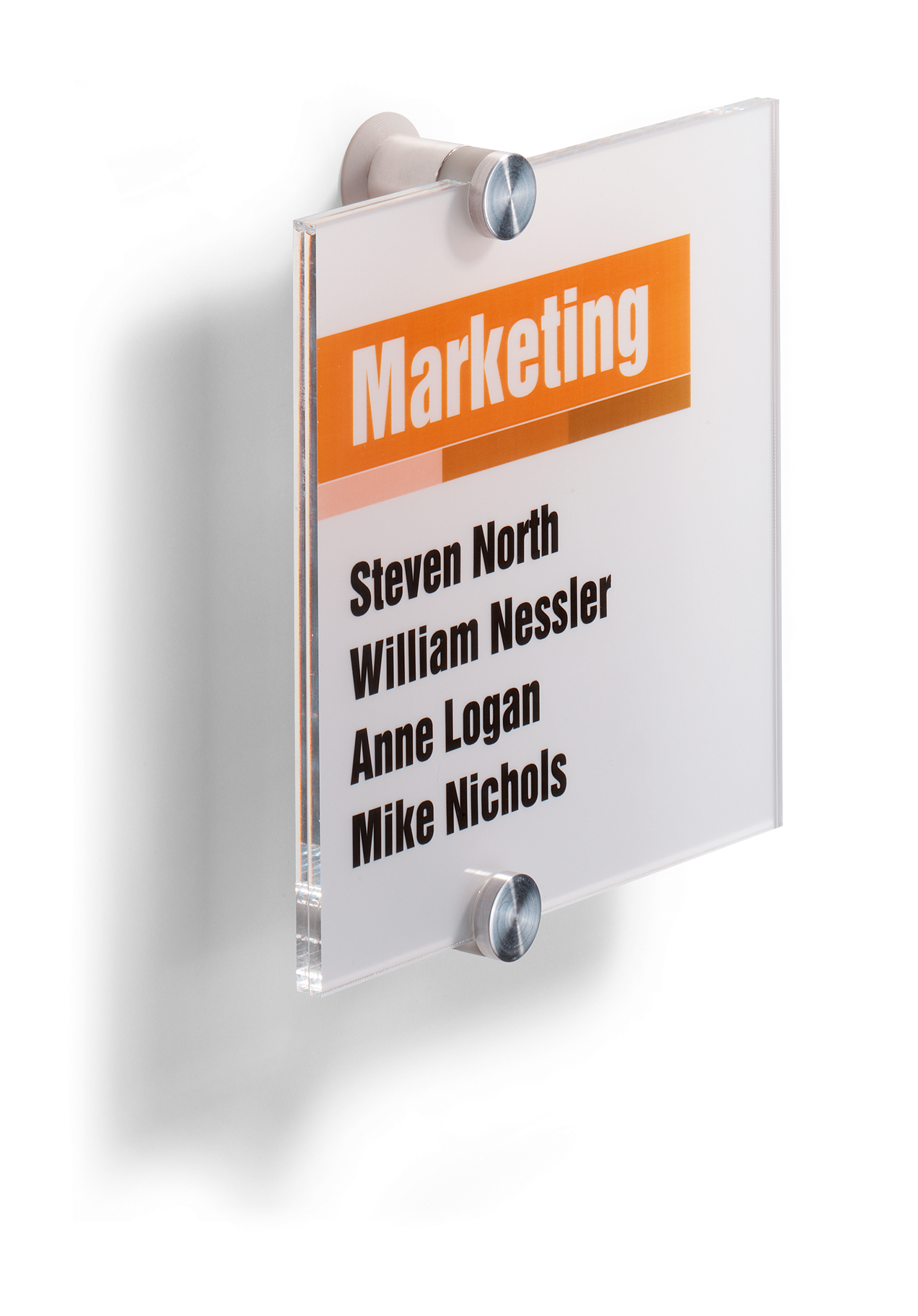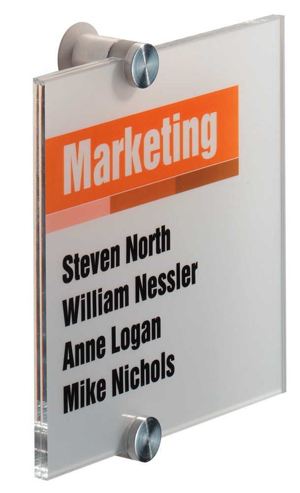 CRYSTAL SIGN dørskilt er en vellykket kombination af design og høj funktionalitet. Skiltet er udført i akrylplast som er sammensat af 2 stk dekorative skruer. 2 stk. frosende indstiksark medfølger til hvert skilt, og disse kan nemt skrives ud på en laserprinter (ikke Blækprinter) Indstiksarket kan også bestilles separat. Anvend DURAPRINT online som kan hjælpe med at fremstille en personlig designet indstiksetiket til skiltet, www.durable.dk.Dørskilt 148×148 mm. 2 stk. frosende indstiksark medfølger. Indstiksarket kan også bestilles separat (Durable art nr 4832).