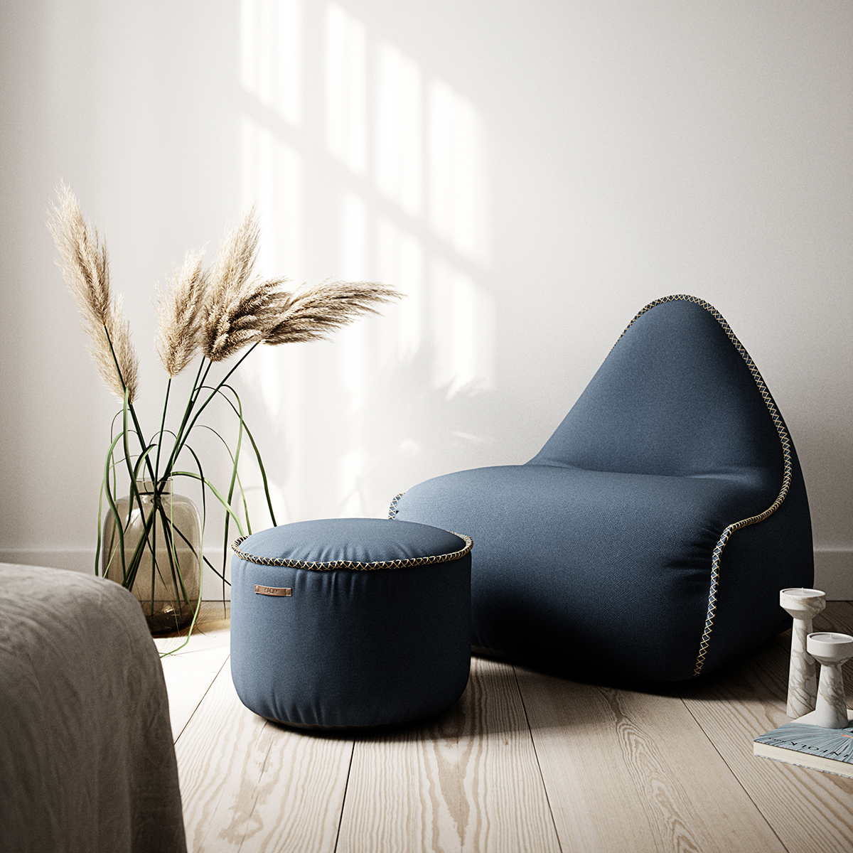 Cura Lounge Chair Dark Blue + Pouf