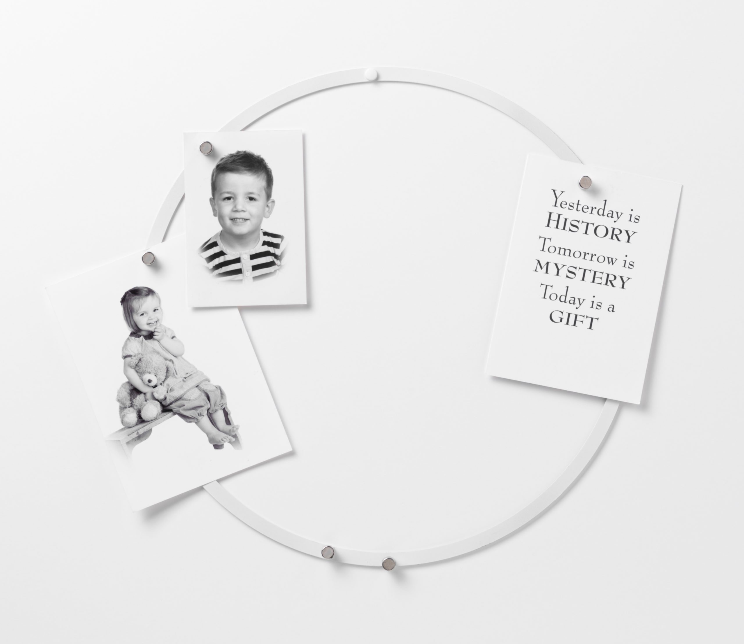 35 cm. Cirkel tavle / Dekorationsring, Magnetisk, Hvid metalMagnetisk ring / tavle, der både kan bruges som opslagstavle med magneter, eller som dekorationsring f.eks. med tørrede blomster.Ringen kan hænges op på væggen, eller frithængende ned fra loftet, f.eks. i en lædersnor.Ophæng: Der er 1 hul til ophæng, og der medfølger skruer til vægophæng.