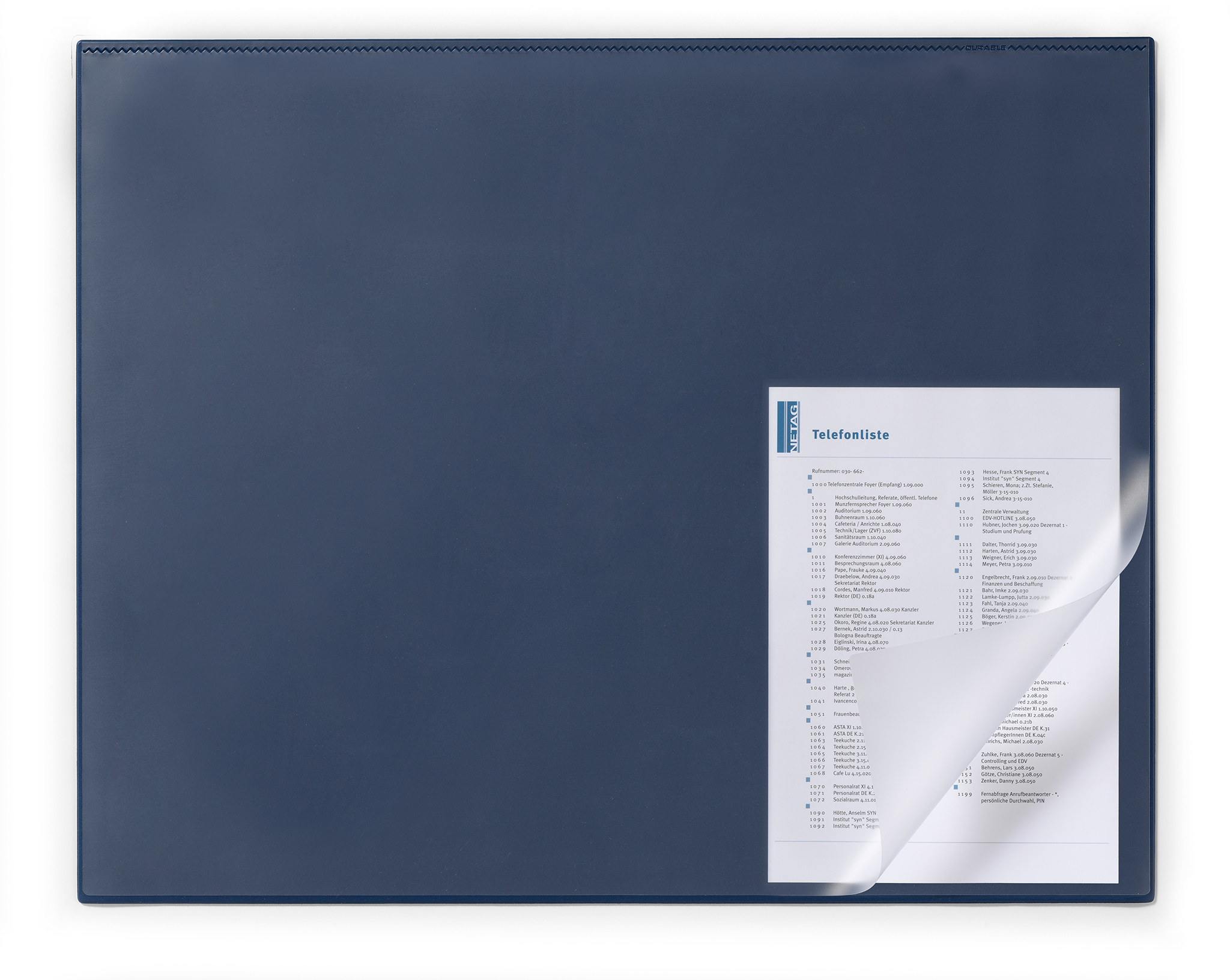 DURABLE skriveunderlag er tilgængelige i forskellige formater, så de passer til individuelle krav. Alle skriveunderlagene er behagelige at bruge og kommer i en række stilfulde designs, der passer til enhver arbejdsplads. Skriveunderlag med kantbeskytter Transparent dækplade til at have underliggende noter og meddelelser lige i nærheden Med selvklæbende strimler for nem montering på bordkanter Skridsikker Mål: 650 x 500 mm (B x H)