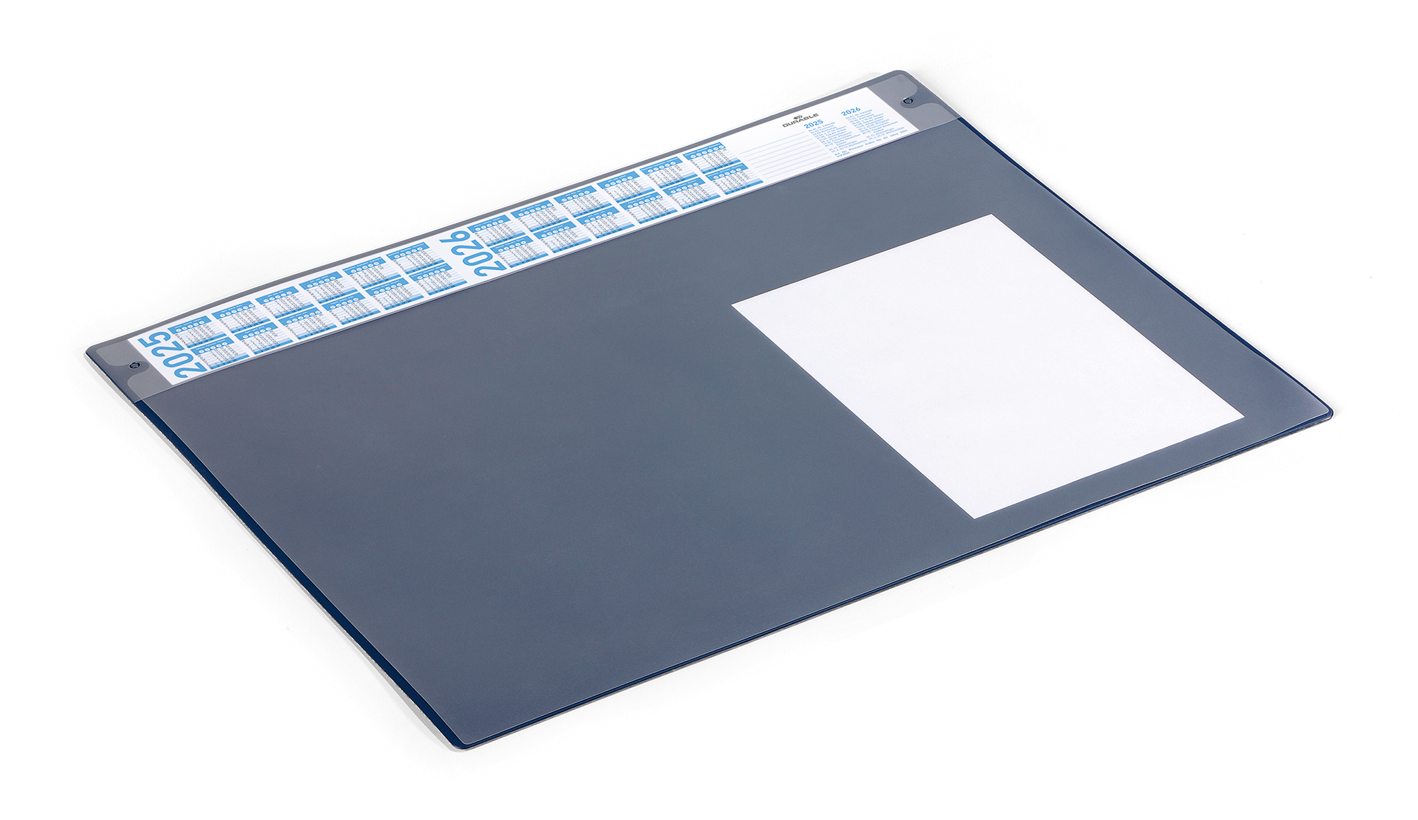 Skriveunderlag 650×520 mm med årskalender og aftagelig overfladeSkriveunderlag med kalender i 4 år. Med anti-genskin og udskiftelig dækplade