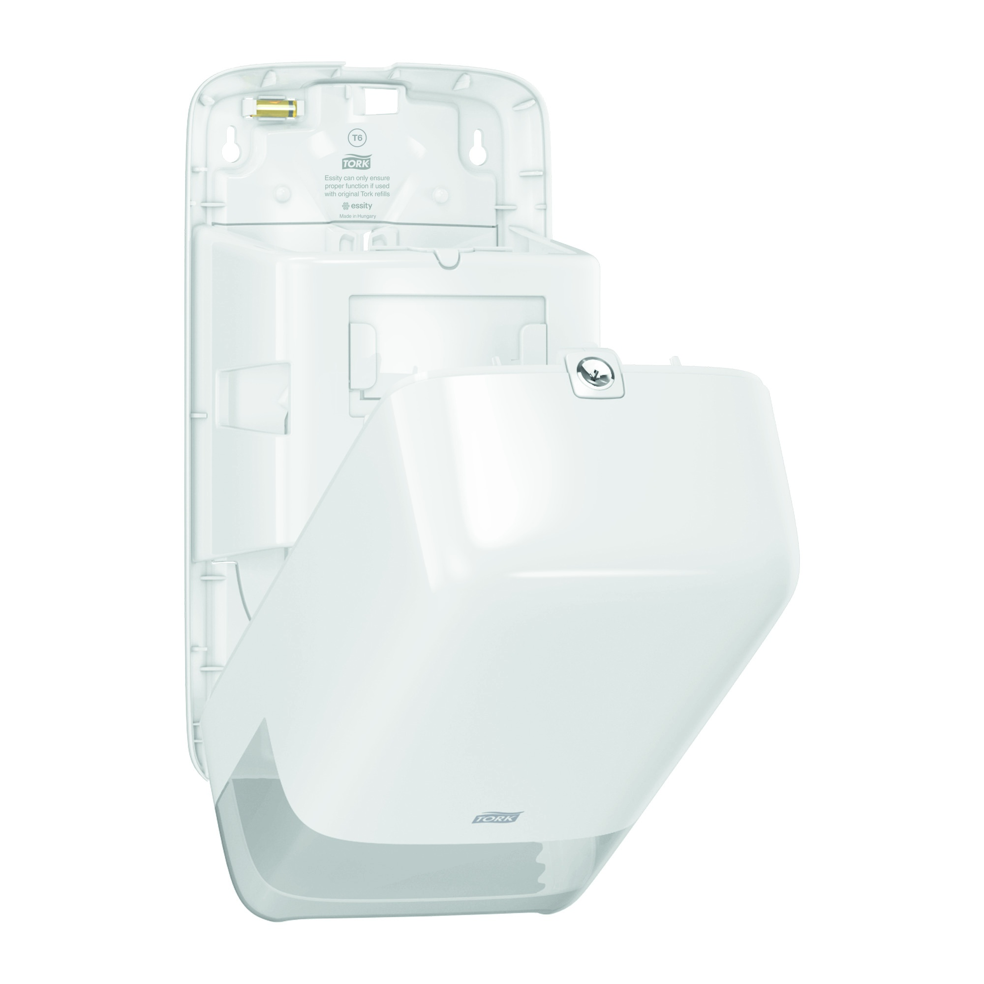 Smart kompakt dispenser i Tork´s T6 serie. Dispenseren har en høj kapacitet og passer derfor perfekt til mindre toiletter med stort besøg af mennesker.