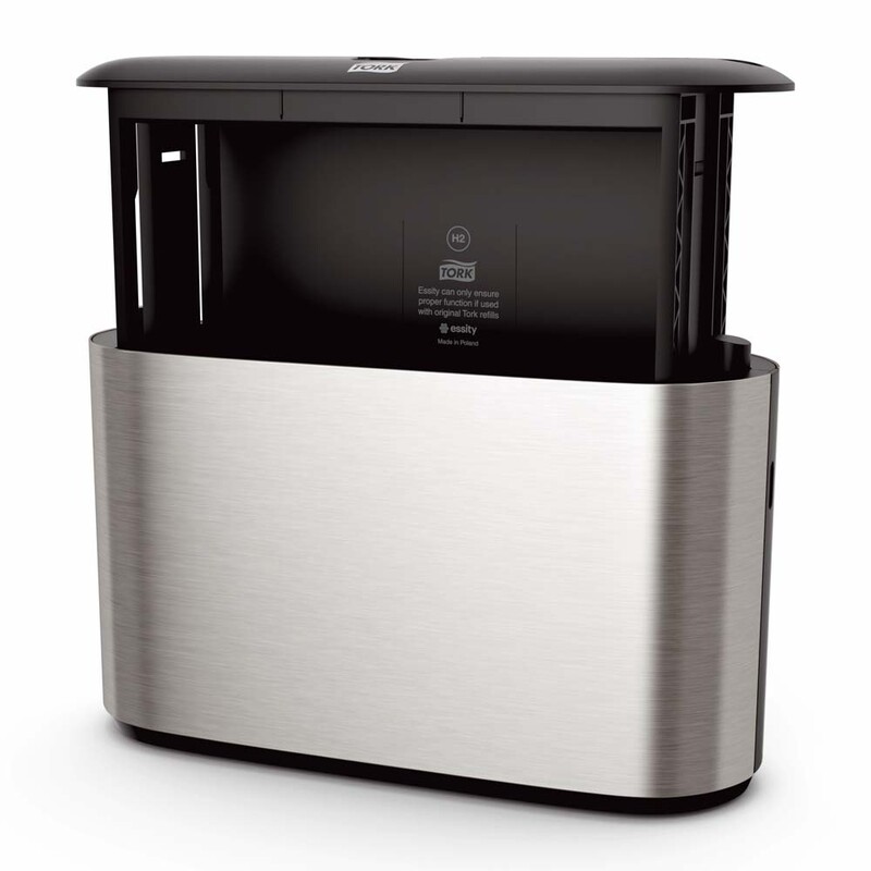 Dispenseren fra Tork er lavet i et moderne design med glatte overflader og rene linjer der passer ubesværet ind i dit toilet. Med Xpress H2 får du en elegant dispenser i rustfrit stål med en coating af fingertrykafvisende materiale, som sikrer at den altid fremtræder ren og pæn.
