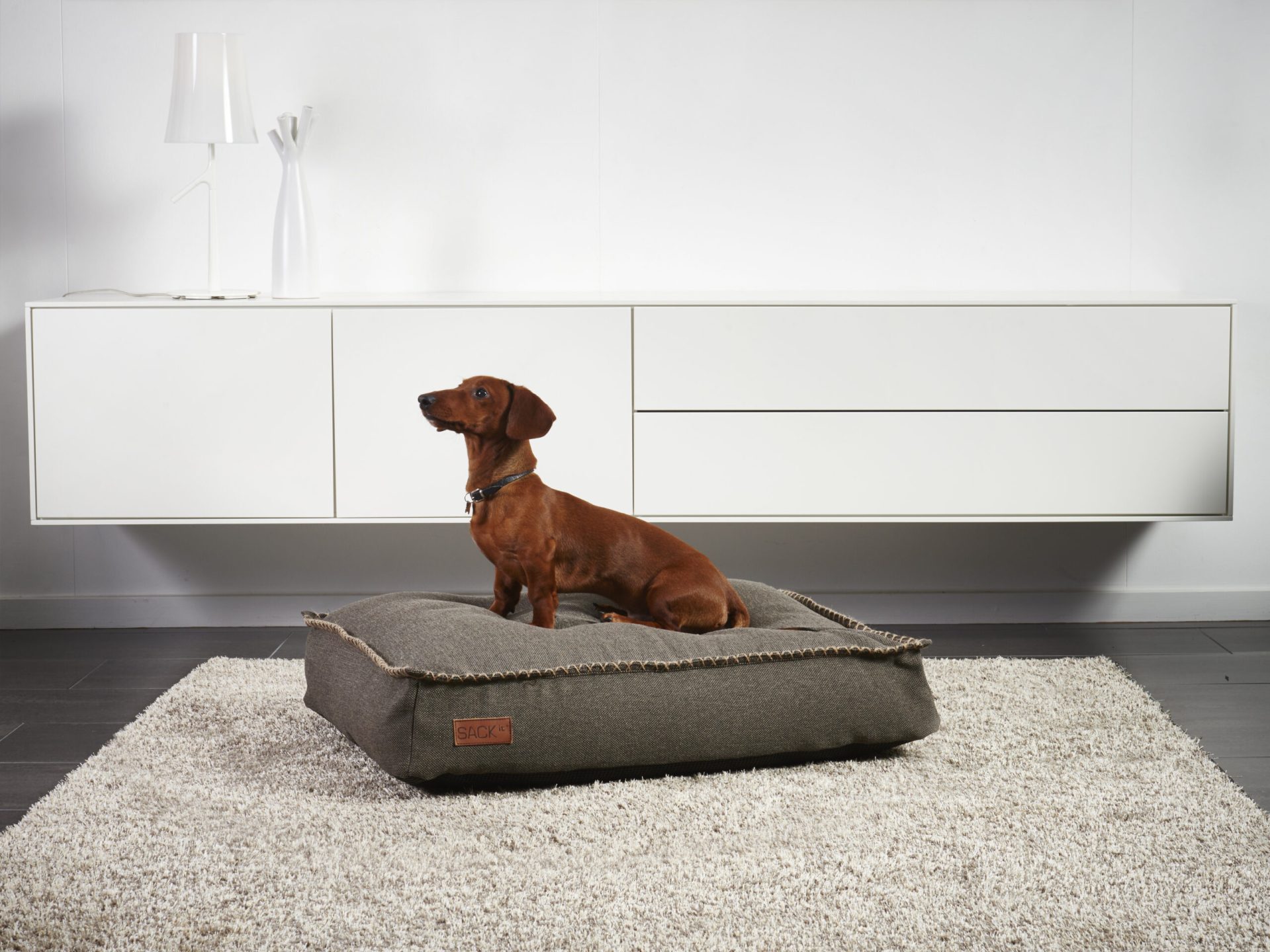 Cobana Dog Bed kombinerer design med funktionalitet. Hundepuden er fremstillet af det slidstærke og smukke Cobana-stof, som både er vandafvisende og lysægte. Den skridsikre belægning på bunden af ??puden sikrer stabilitet, så dit kæledyr kan slappe af uden at glide rundt.