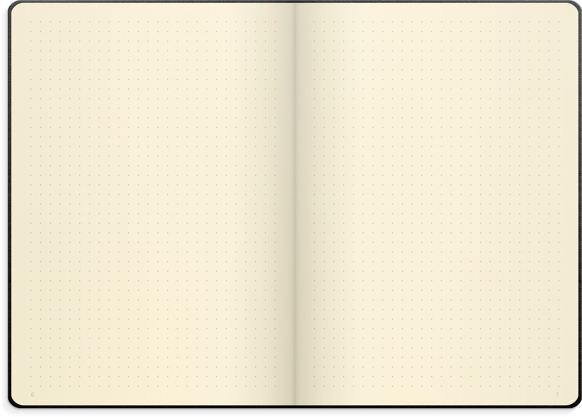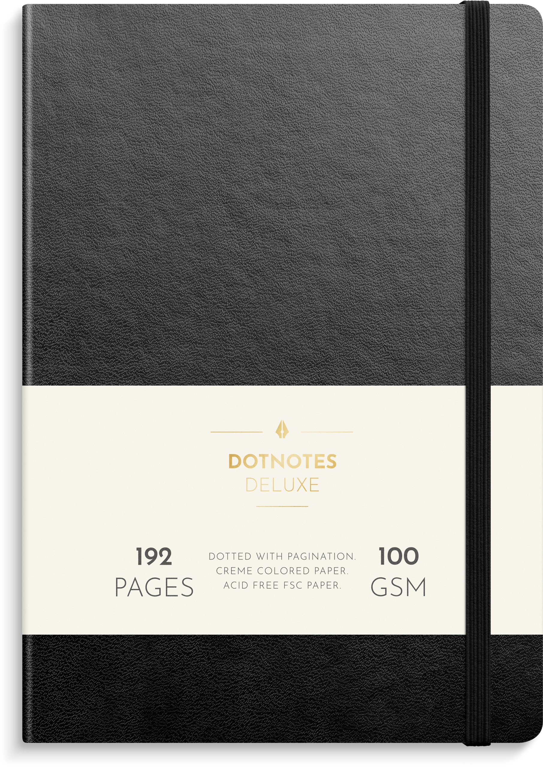 Omslag i kunstskind, elastik. Indeholder prikkede sider, 80 g, 128 blade. Indbundet. FSC®. Format: A5.