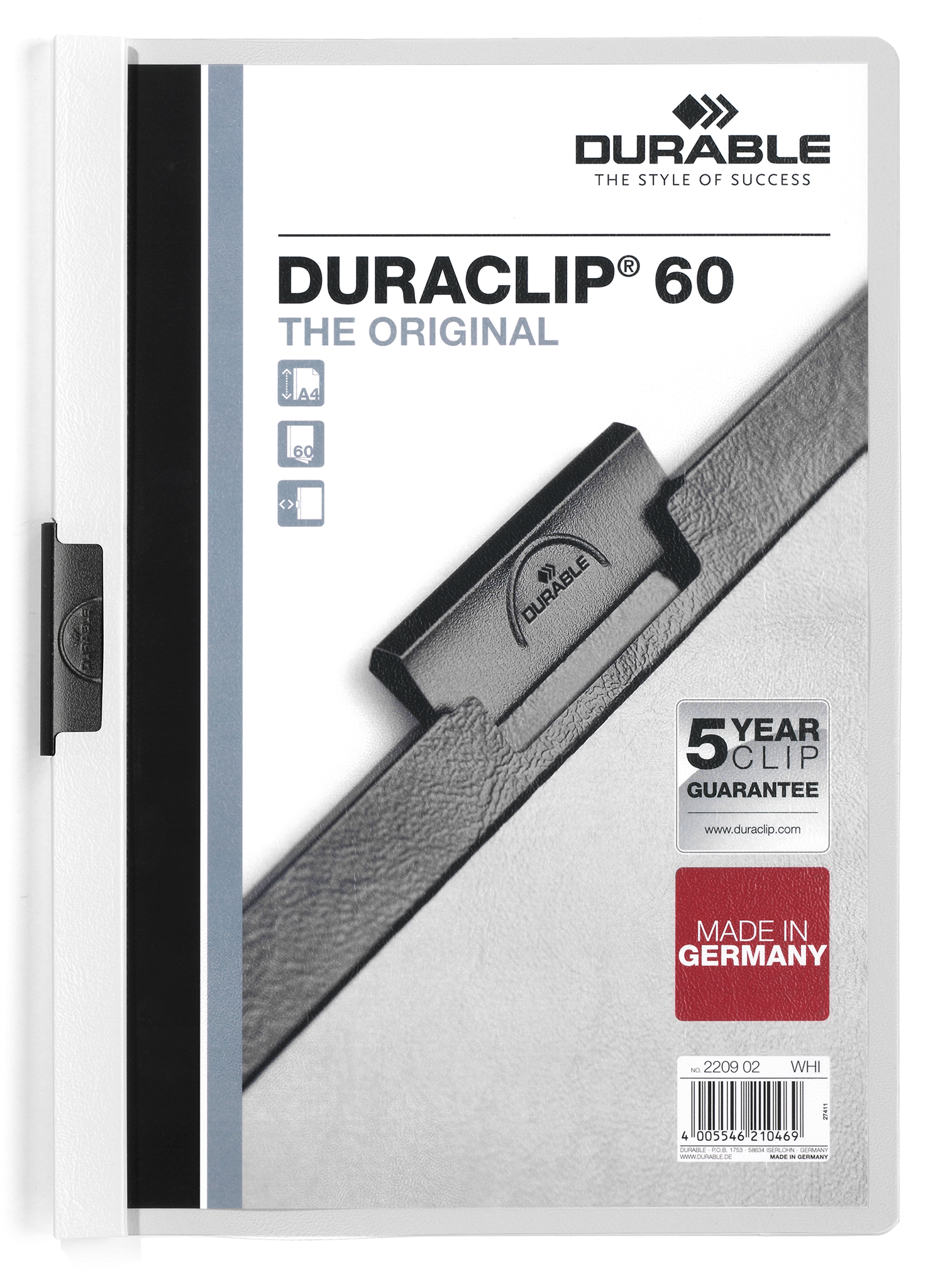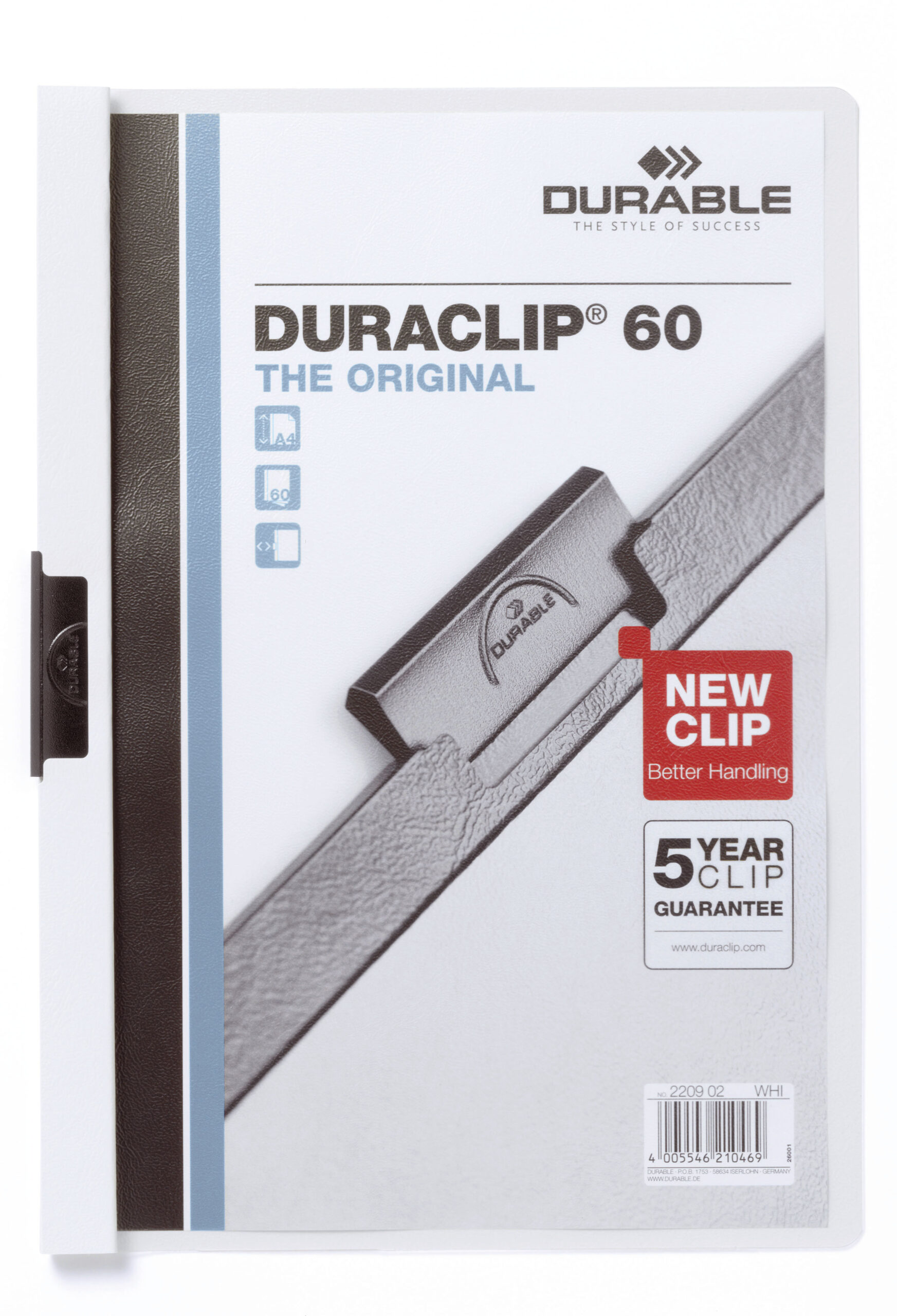 Duraclip® 60 retail packDen originale klemmappen DURACLIP® 2209 med transparent forside, for op til 60 A4 ark.