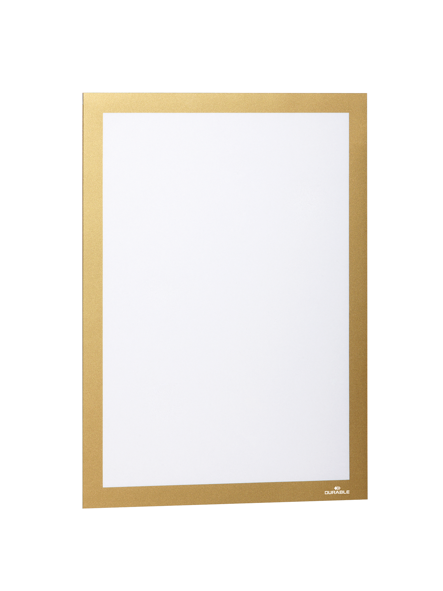 Den professionelle måde at annoncere. Den selvklæbende inforamme DURAFRAME® er den ideelle løsning for at vise oplysninger på solide og glatte overflader. • Viser oplysninger på en professionel og elegant måde • Hurtigt at installere og udskifte indholdet takket være den oplukkelige magnetisk ramme • Nemt at sætte op på faste og glatte overflader; kan fjernes igen fra glas • Anvendelsesområder: at vise og præsentere informationer i A4 format, f.eks. skilte, kampagnetilbud, reklamer, åbningstider • Ved anvendelse på glas, kan informationen læses fra begge sider • Rammen ser identisk ud fra begge sider • Til anvendelse i stående eller liggende format • Ydermål: 236 x 323 mm • Placering af selvklæbende DURAFRAME® inforammer på malet, coatede og laminerende overflader, anbefales ikke, da denne overflade kan blive beskadiget når rammen fjernes. Til disse overflader anbefaler vi DURAFRAME® WALLPAPER som findes i A3 og A4 formater. 2 stk/pose guld