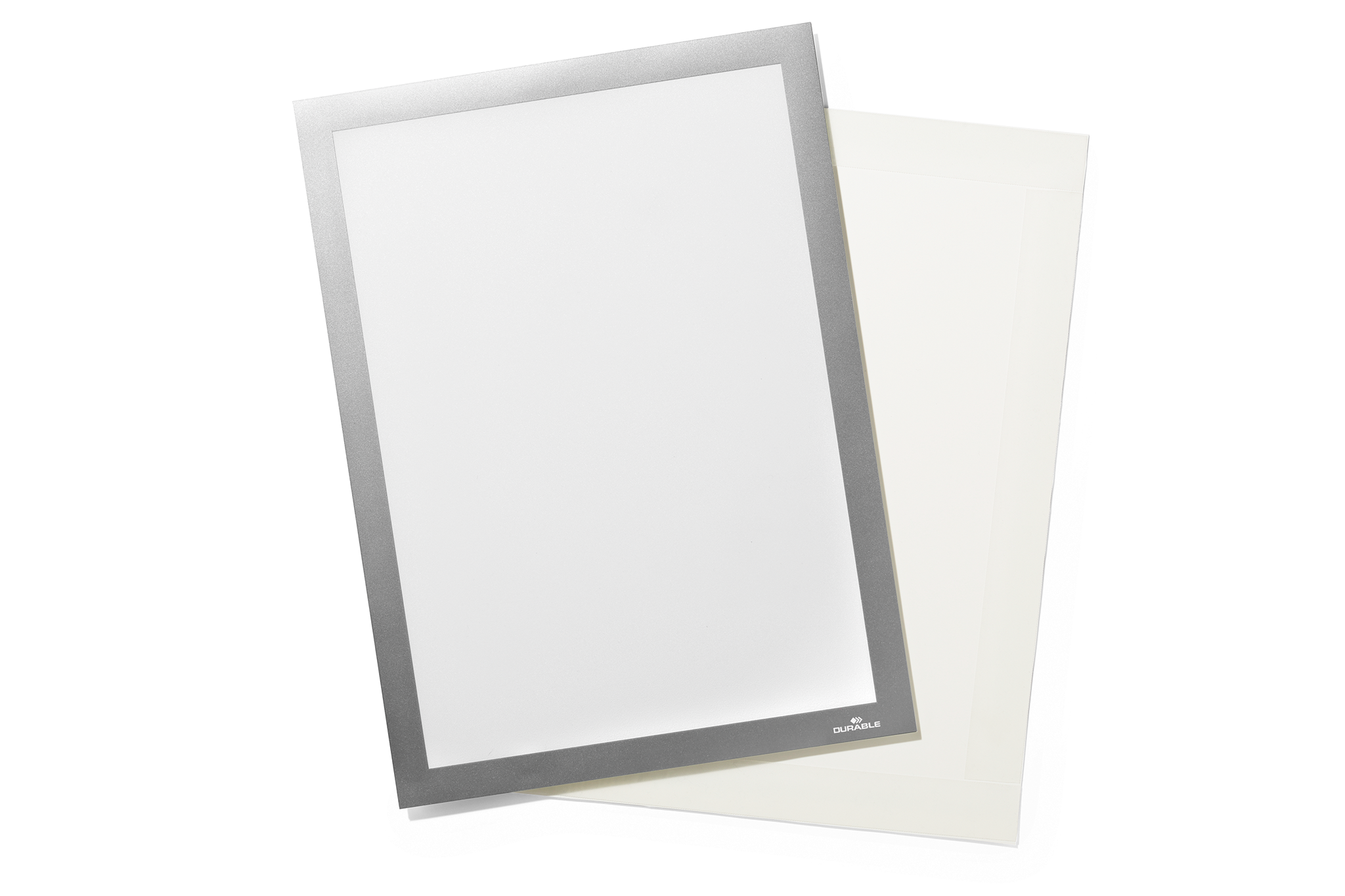 Den professionelle måde at annoncere. Inforammen DURAFRAME® GRIP er den ideelle løsning for informationer og oplysninger på tekstiloverflader. • Viser oplysninger på en professionel og elegant måde • Hurtigt at installere og udskifte indholdet takket være den oplukkelige magnetisk ramme • Nemt at sætte op på tekstiloverflader såsom skærmvægge og akustiske plader af tekstil • Anvendelsesområder: for dokumenter og papirark i A4 format, f.eks. telefonlister på tekstilskillevæggen på arbejdspladsen • Til anvendelse i stående eller liggende format • Ydermål: 236 x 323 mm Bemærk: Produktet skal fjernes fra tekstiloverfladen ved forsigtigt at trække det sidelæns, vandret. Undgå at trække fra top til bund. Det kan komme lidt løse tråde der hvor produktet har siddet. Pas på at bagsiden ikke kommer i kontakt med dit tøj, når du sætter inforammen op, idet det fine velcrobånd på bagsiden kan beskadige dit tøj 1 stk./pose sølv