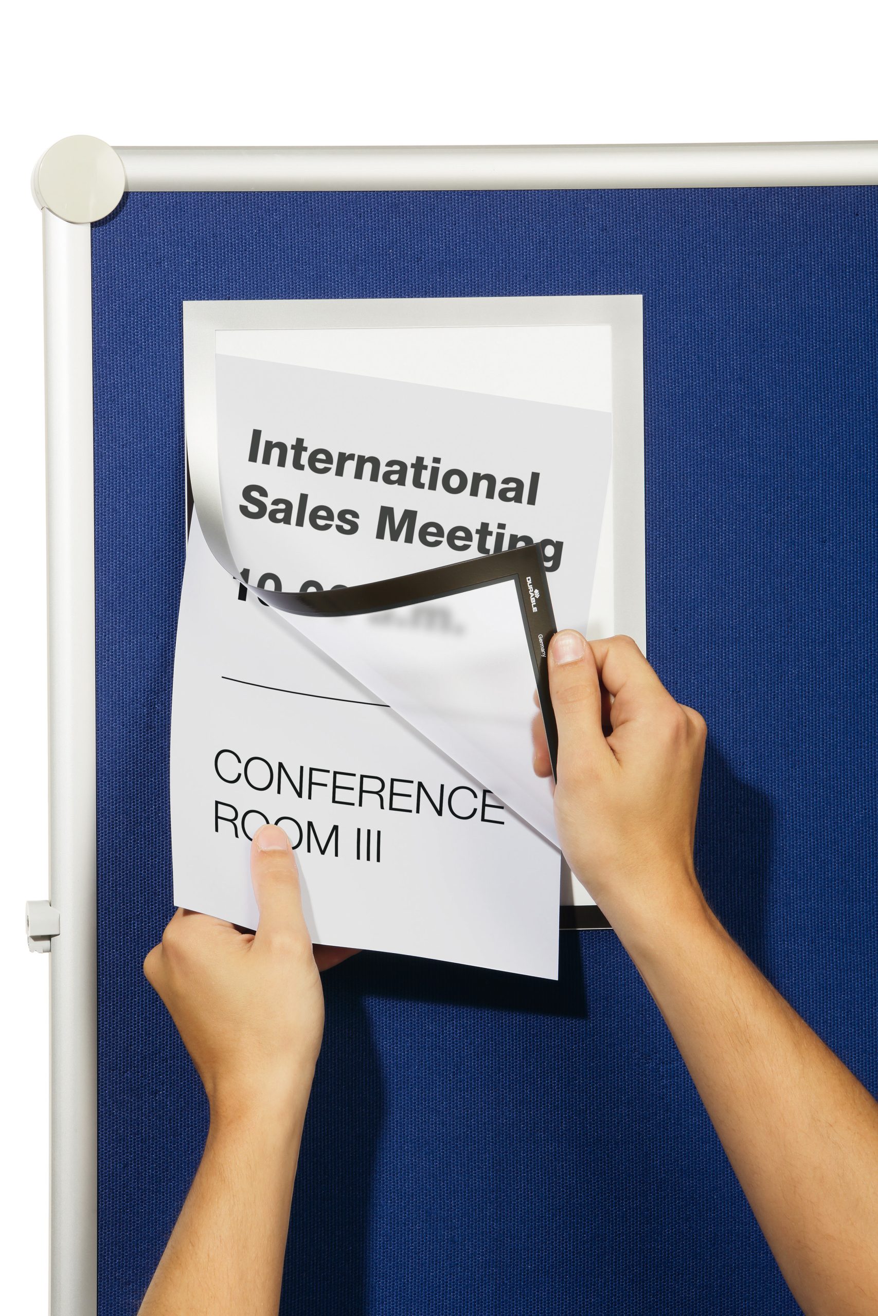 Inforamme duraframe® grip a4Informationsramme til fastgørelse til stof overflader, såsom skærmvægge og akustiklattor med tekstil overflade. Til oplysninger i A4-format. 1 stk/pose