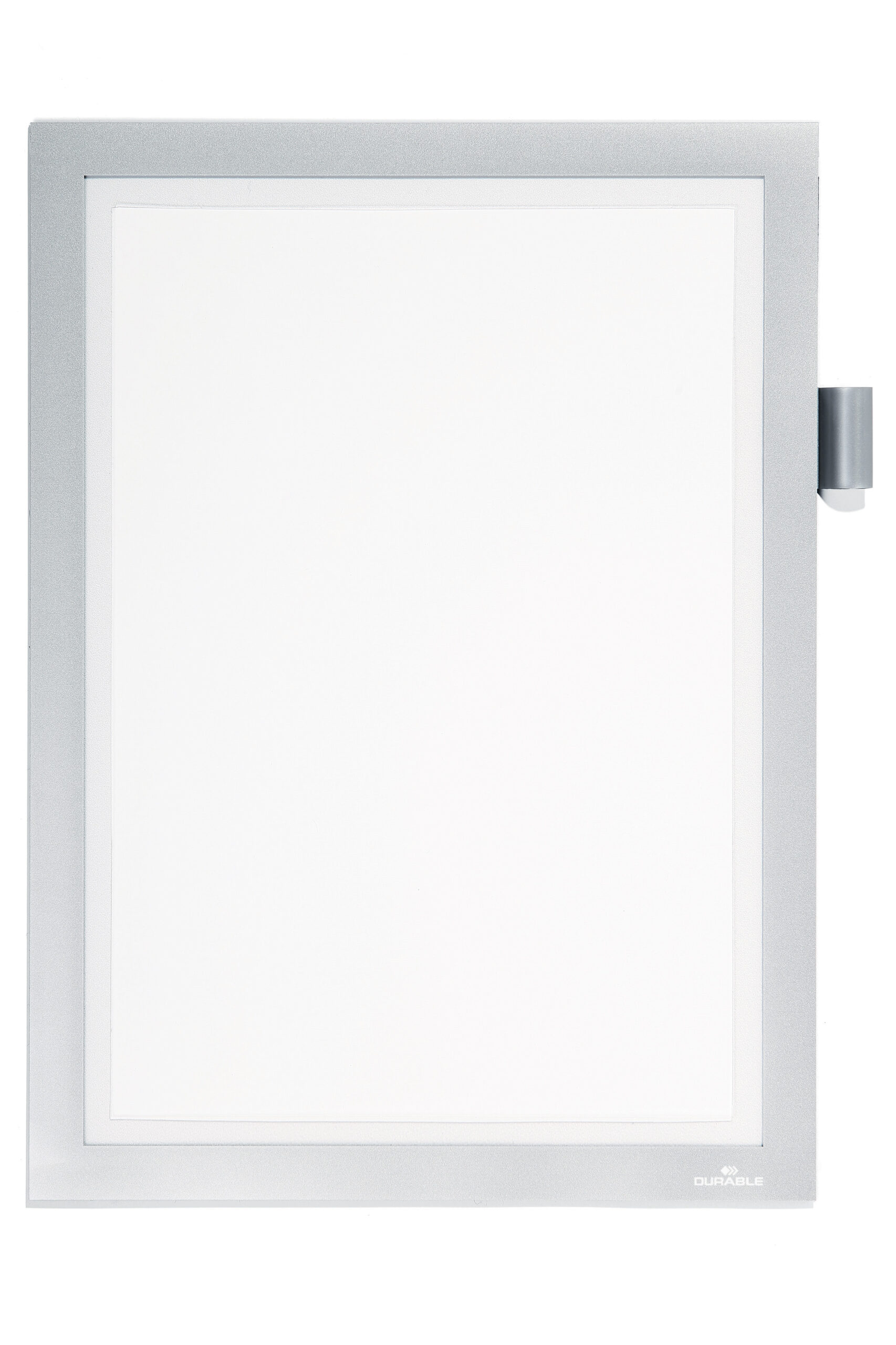 Den professionelle måde at annoncere. Den magnetiske inforamme DURAFRAME® MAGNETIC NOTE med penneholder er den ideelle løsning for at gøre hurtige bemærkninger på idéer og foreslag direkte på A4 papiret. • Viser oplysninger på en professionel og elegant måde • Hurtigt at installere og udskifte indholdet takket være den oplukkelige magnetisk ramme • Let at opsætte på metaloverflader som f.eks. whiteboardtavler, opslagstavler, skabe og fabriksmaskiner. • Anvendelsesområder: Rengøringsstatus på offentlige toiletter, registreringslister for begivenheder og indsamling af oplysninger og arbejdsprocesser, vedligeholdelse og sikkerhedstjek • Skriv direkte på dokumentet indenfor rammen • Kan indeholde op til 5 ark A4 80 gr • Kuglepensholder for penne med clips på den ene side • Til anvendelse i stående eller liggende format