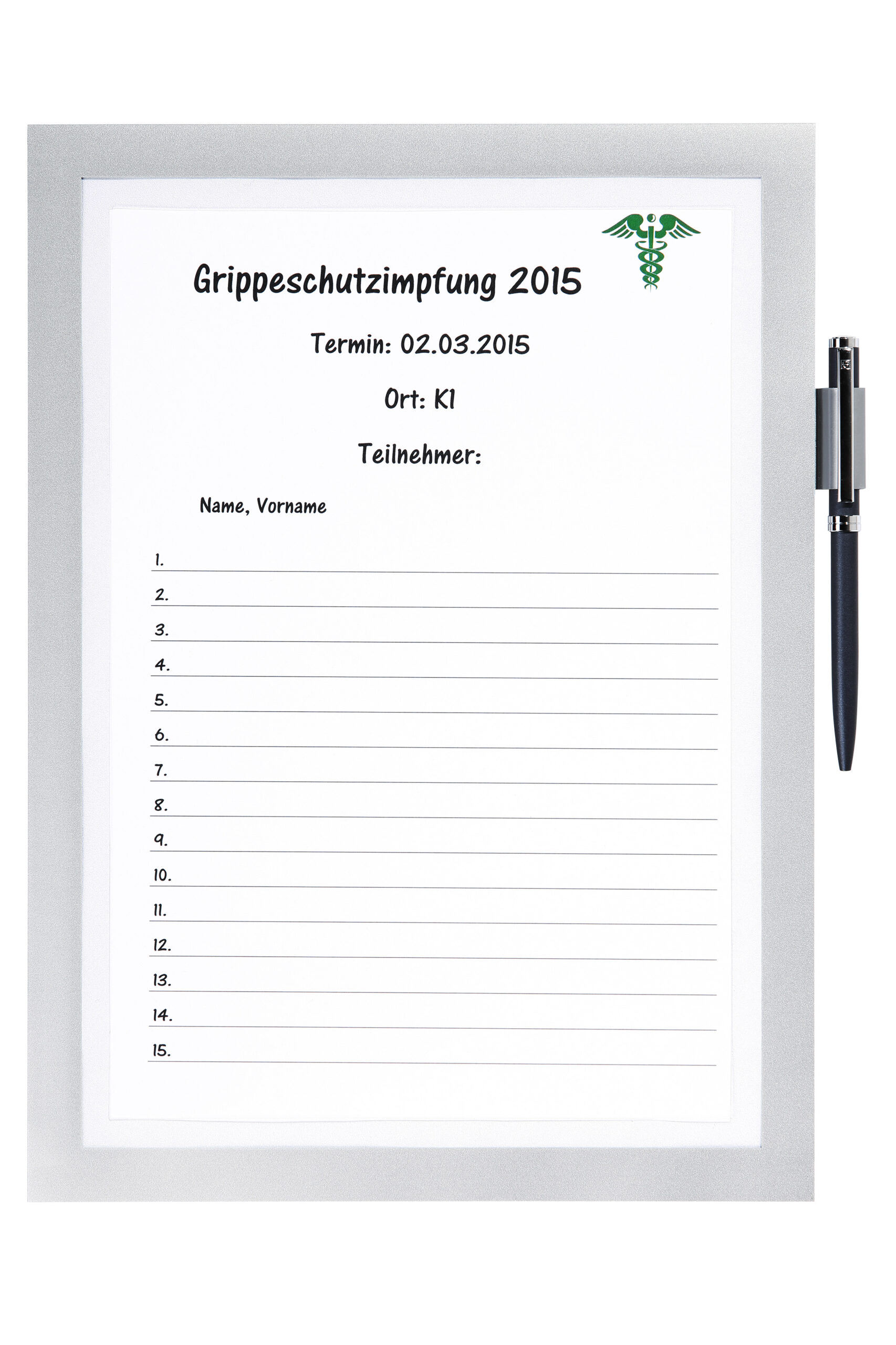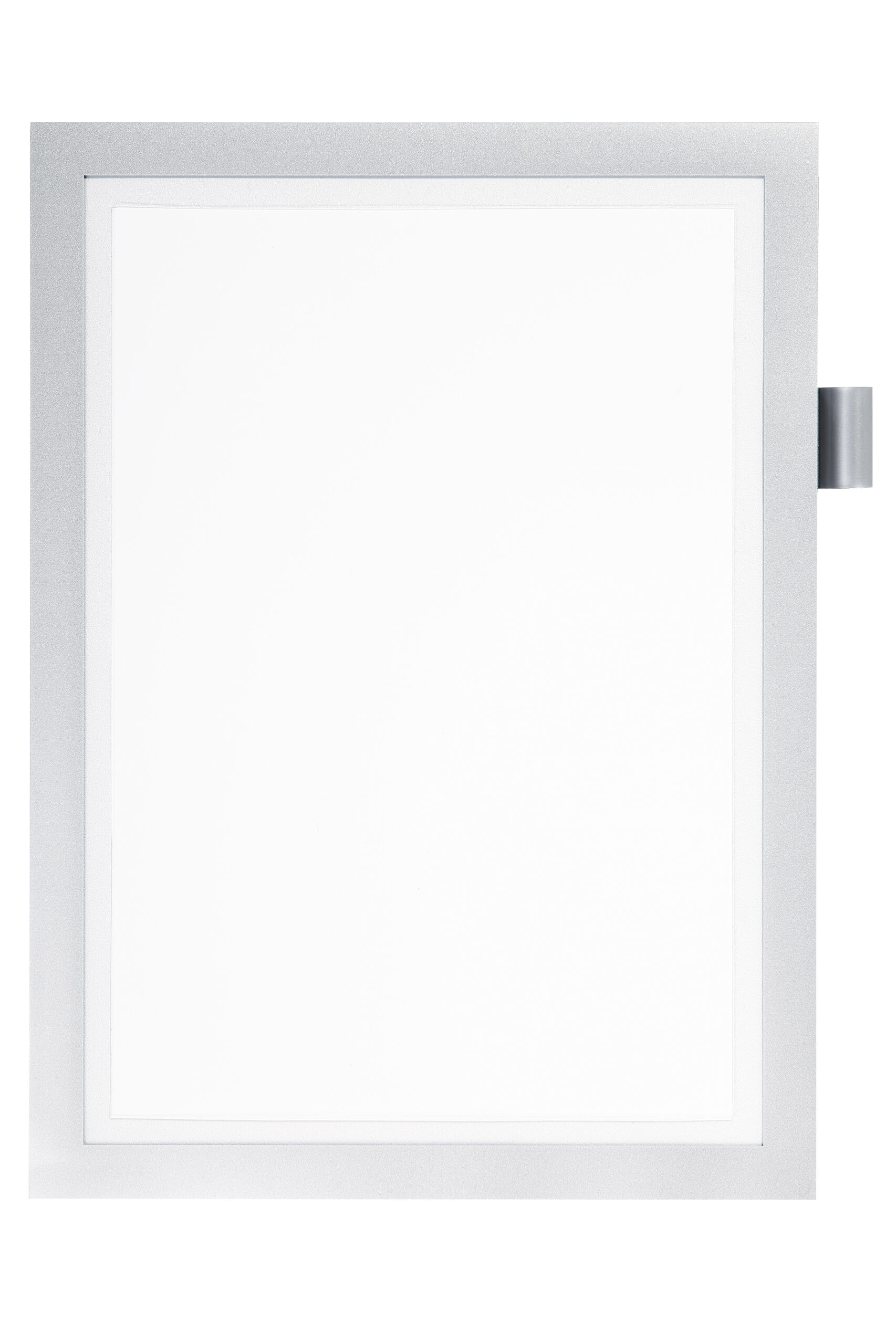 Den professionelle måde at annoncere. Den selvklæbende inforamme DURAFRAME® NOTE med penneholder er den ideelle løsning for at gøre hurtige bemærkninger på idéer og foreslag direkte på A4 papiret. • Viser oplysninger på en professionel og elegant måde • Hurtigt at installere og udskifte indholdet takket være den oplukkelige magnetisk ramme • Nemt at sætte op på faste og glatte overflader; kan fjernes igen fra glas • Anvendelsesområder: Rengøringsstatus på offentlige toiletter, registreringslister for begivenheder og indsamling af oplysninger og arbejdsprocesser, vedligeholdelse og sikkerhedstjek • Skriv direkte på dokumentet indenfor rammen • Kan indeholde op til 5 ark A4 • Kuglepensholder for penne med clips på den ene side • Rammens farve er identisk på begge sider • Til anvendelse i stående eller liggende format • Placering af selvklæbende DURAFRAME® inforammer på malet, coatede og laminerende overflader, anbefales ikke, da denne overflade kan blive beskadiget når rammen fjernes. Til disse overflader anbefaler vi DURAFRAME® WALLPAPER som findes i A3 og A4 formater. 1 stk/pose sølv